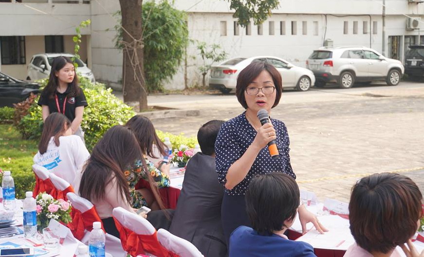Tiếp đó, TS. Phạm Thu Hương - Trưởng phòng Quản lý đào tạo đã có bài giới thiệu khái quát về trường Đại học Ngoại thương, về các phương thức xét tuyển mới trong kỳ thi năm nay của trường, thông tin cụ thể về các ngành và chuyên ngành đào tạo của nhà trường, về cách thức viết hồ sơ đăng ký xét tuyển, quy chế tuyển thẳng và ưu tiên xét tuyển, về mã ngành, nhóm ngành, về độ lệch điểm giữa các khối thi, về cách thức xét tuyển, về cơ hội nghề nghiệp sau khi ra trường...