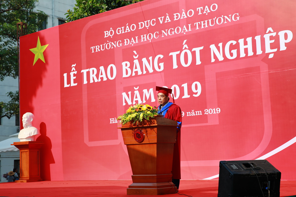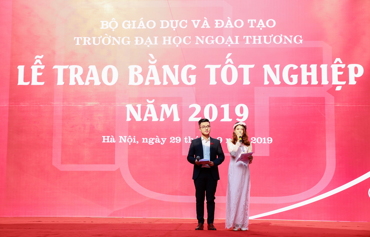 Đại diện cho các tân cử nhân, sinh viên Vương Như Quỳnh - Thủ khoa tốt nghiệp chuyên ngành Tiếng Trung thương mại đã phát biểu bày tỏ cảm ơn và tri ân tới các Thầy Cô giáo, cán bộ, công nhân viên chức Nhà trường trong suốt 4 năm qua đã tận tình giảng dạy, rèn luyện, hướng dẫn cho các em sinh viên để các em đạt được những thành tựu bước đầu ngày hôm nay, cảm ơn các bậc phụ huynh và gia đình đã luôn theo sát, ủng hộ, là chỗ dựa tinh thần vững chắc cho các bạn sinh viên. Tân thủ khoa xin hứa sẽ nỗ lực phấn đấu nhiều hơn nữa trên con đường phía trước để không phụ sự kỳ vọng và niềm tin yêu mà cha mẹ, thầy cô và bạn bè luôn dành cho.
