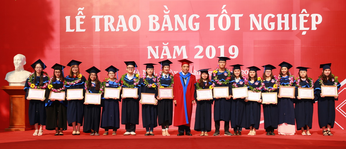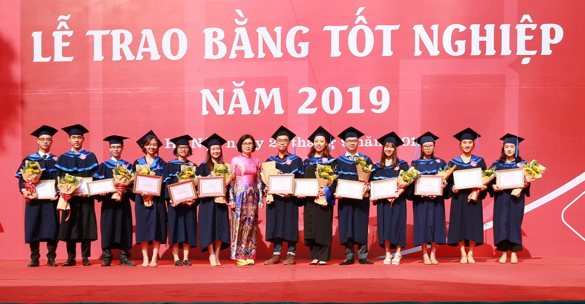 Thay mặt Đảng ủy, HĐT, BGH và các Thầy Cô giáo Nhà trường, PGS. TS. Bùi Anh Tuấn đã tặng hoa, giấy khen và học bổng cho 24 tân thủ khoa tốt nghiệp xuất sắc của tất cả các chuyên ngành đào tạo, các chương trình đào tạo cử nhân hệ chính quy. Cũng tại buổi lễ, PGS, TS Lê Thị Thu Thủy đã tặng hoa, giấy khen và học bổng cho 12 tân cử nhân đã có thành tích xuất sắc trong công tác Đoàn thanh niên, Hội sinh viên, Câu lạc bộ, cán bộ lớp, đóng góp hiệu quả cho hoạt động cộng đồng trong suốt 4 năm học.
