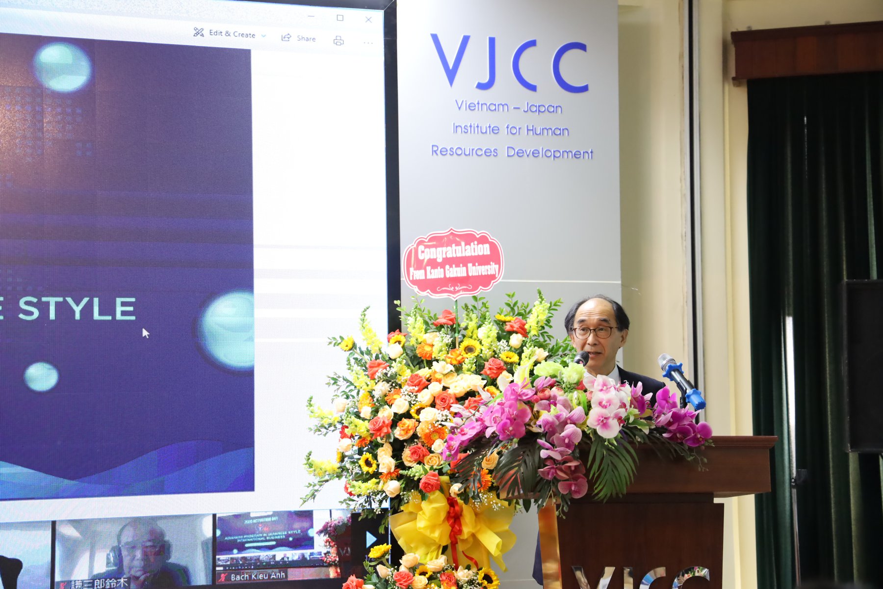 Cũng tại buổi lễ, GS Hiroyoshi Kiku - Hiệu trưởng trường ĐH Kanto Gakuin một lần nữa khẳng định mối quan hệ hợp tác lâu dài, bền chặt giữa 2 trường và cam kết tiếp tục hỗ trợ vận hành môn học V-Biz, nâng cao chất lượng, đem lại những kiến thức thực tiễn và lợi ích cho sinh viên của chương trình.