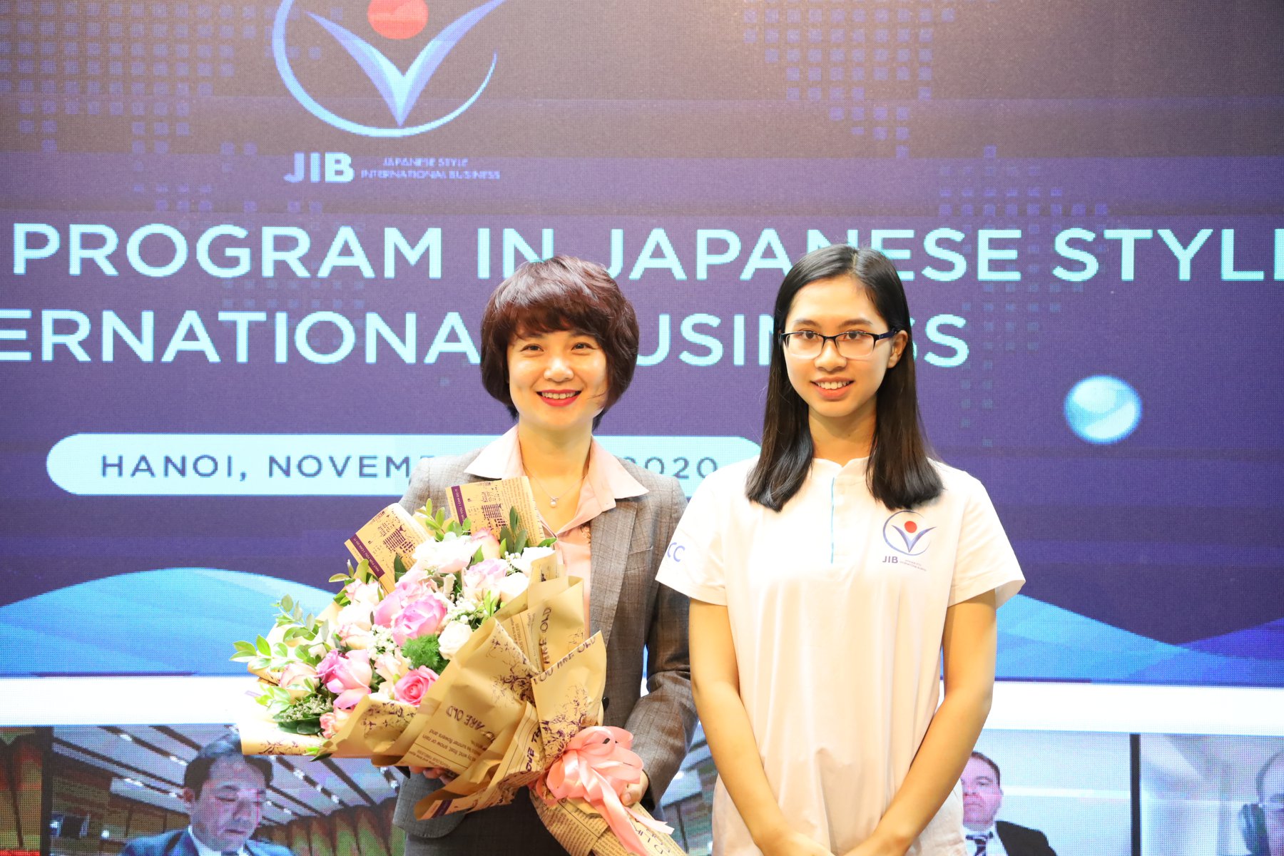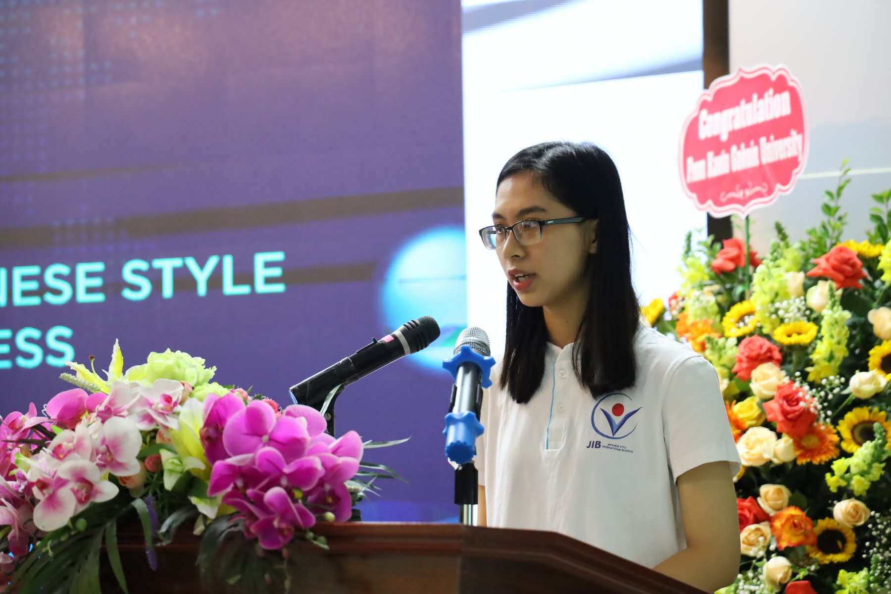 Thay mặt các tân sinh viên K59, em Nguyễn Thùy Trang – thủ khoa đầu vào Chương trình JIB đã gửi lời cảm ơn trân trọng đến BGH Nhà trường, BLĐ Viện VJCC, các tổ chức, doanh nghiệp trong và ngoài nước đã đồng hành, hỗ trợ cho sinh viên của chương trình và thể hiện sự quyết tâm của K59 học tập và rèn luyện tốt, phát huy tinh thần và tạo nên một thế hệ JIB tỏa sáng.