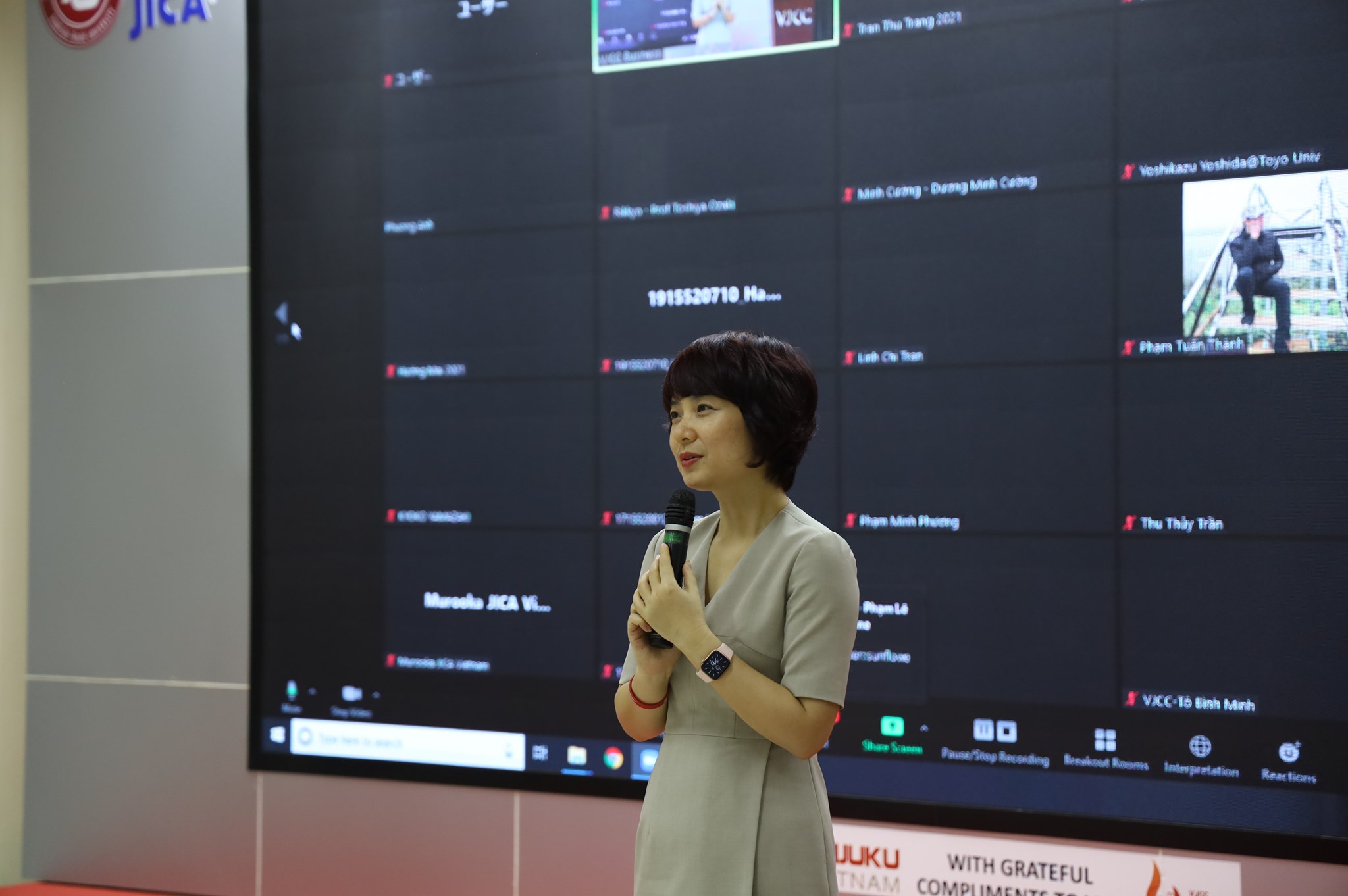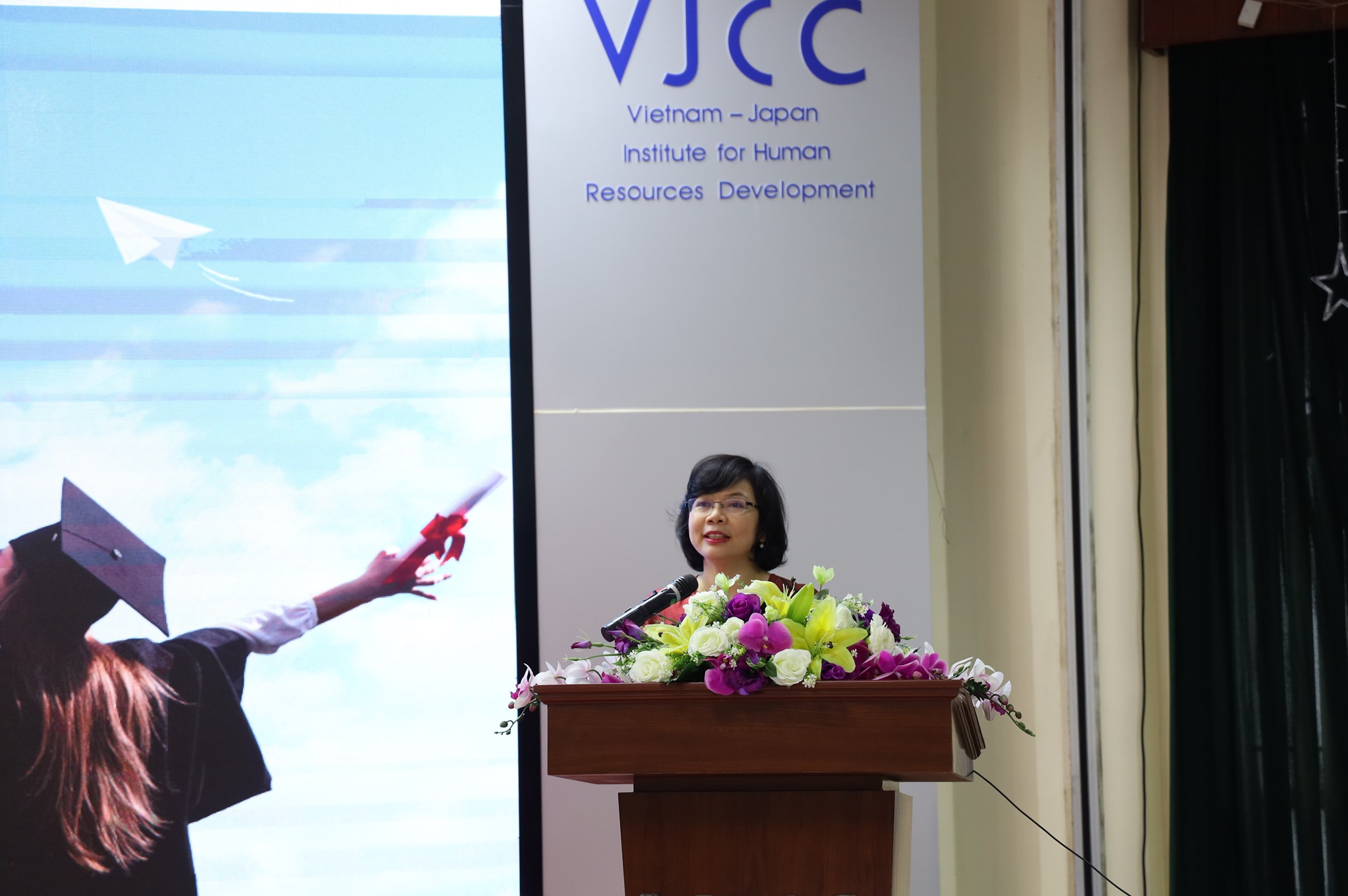 Tiếp đó, PGS, TS Nguyễn Thị Hiền - Viện trưởng Viện VJCC đã gửi lời tri ân sâu sắc tới các đối tác, các trường đại học đã đồng hành cùng Viện VJCC triển khai chương trình trong suốt thời gian qua. Cũng nhân dịp này, Viện VJCC cũng đã vinh danh các sinh viên K56 của Viện VJCC đạt thành tích xuất sắc trong học tập và rèn luyện.