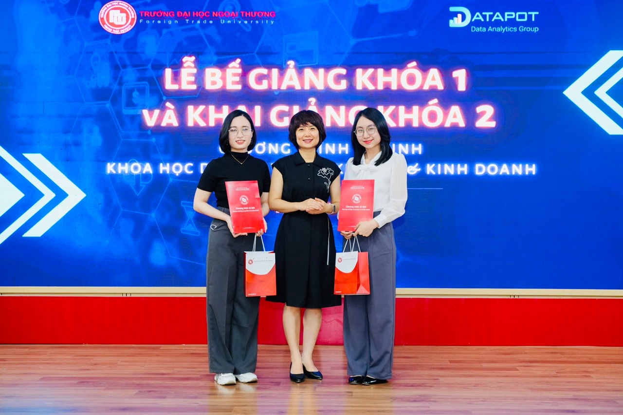 Ngày 16/04/2022, Trường ĐH Ngoại thương đã tổ chức Lễ bế giảng Khóa 1 với gần 30 học viên theo học được lựa chọn từ 162 học viên đăng ký và khai giảng Khóa 2 với gần 50 học viên được lựa chọn từ 212 học viên đăng ký theo học chương trình vệ tinh Khoa học dữ liệu trong kinh tế và kinh doanh.