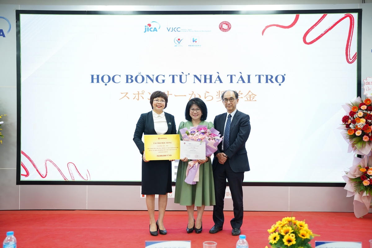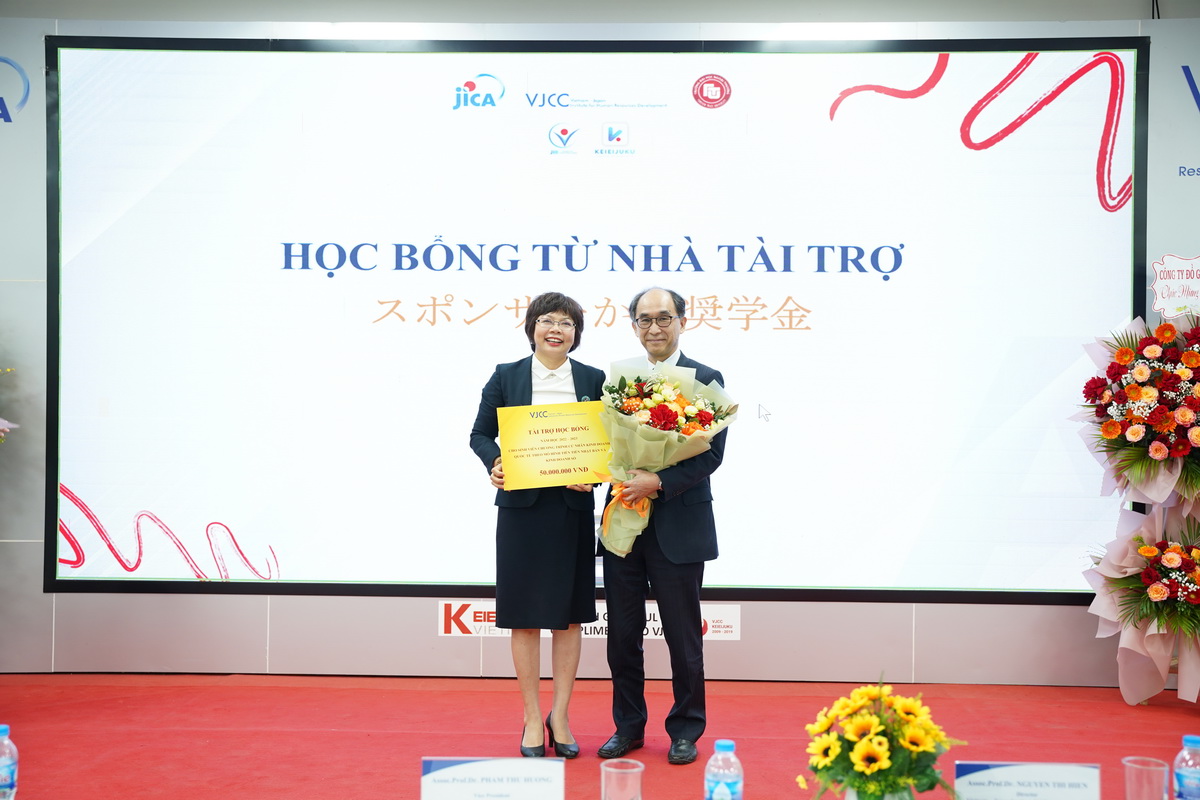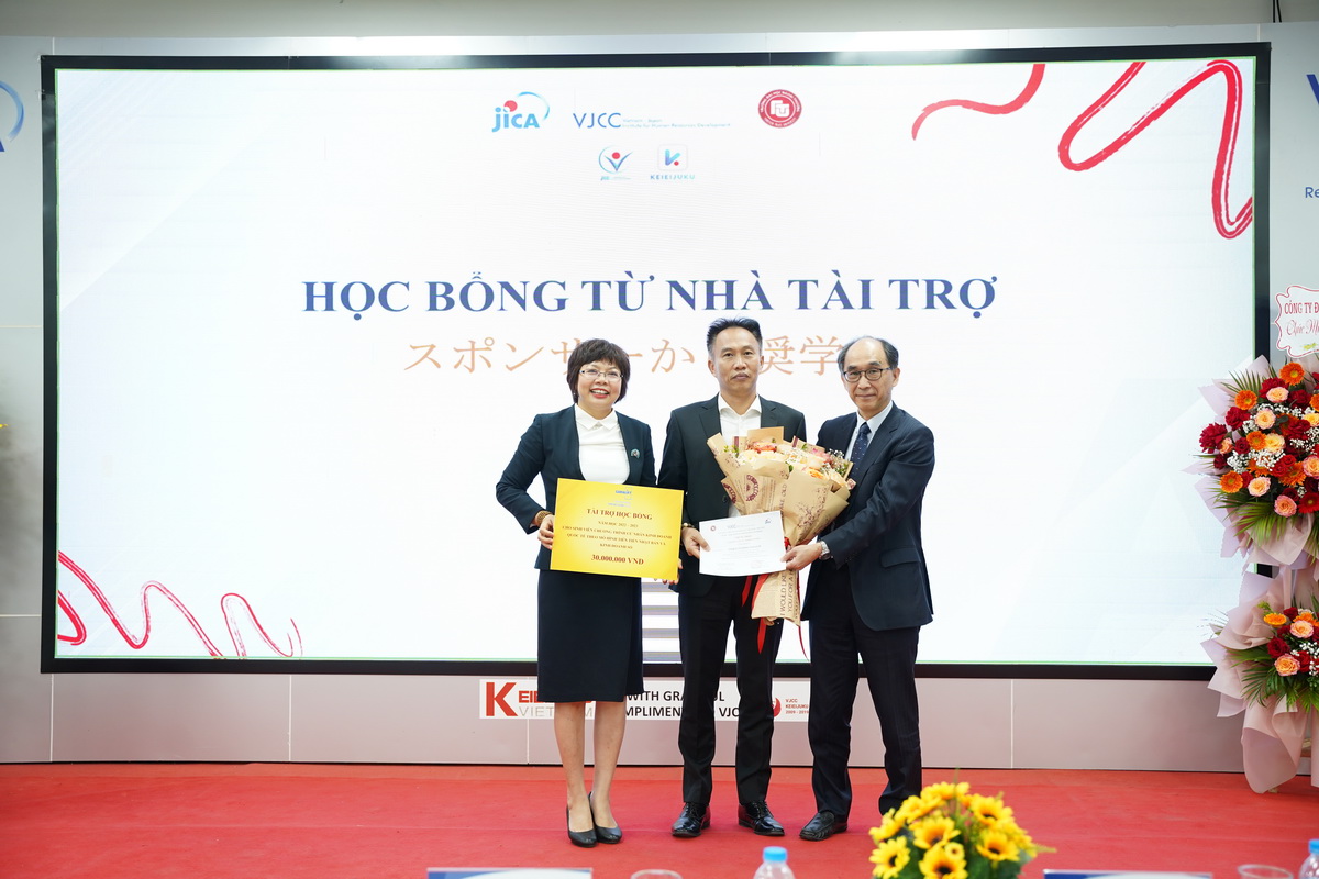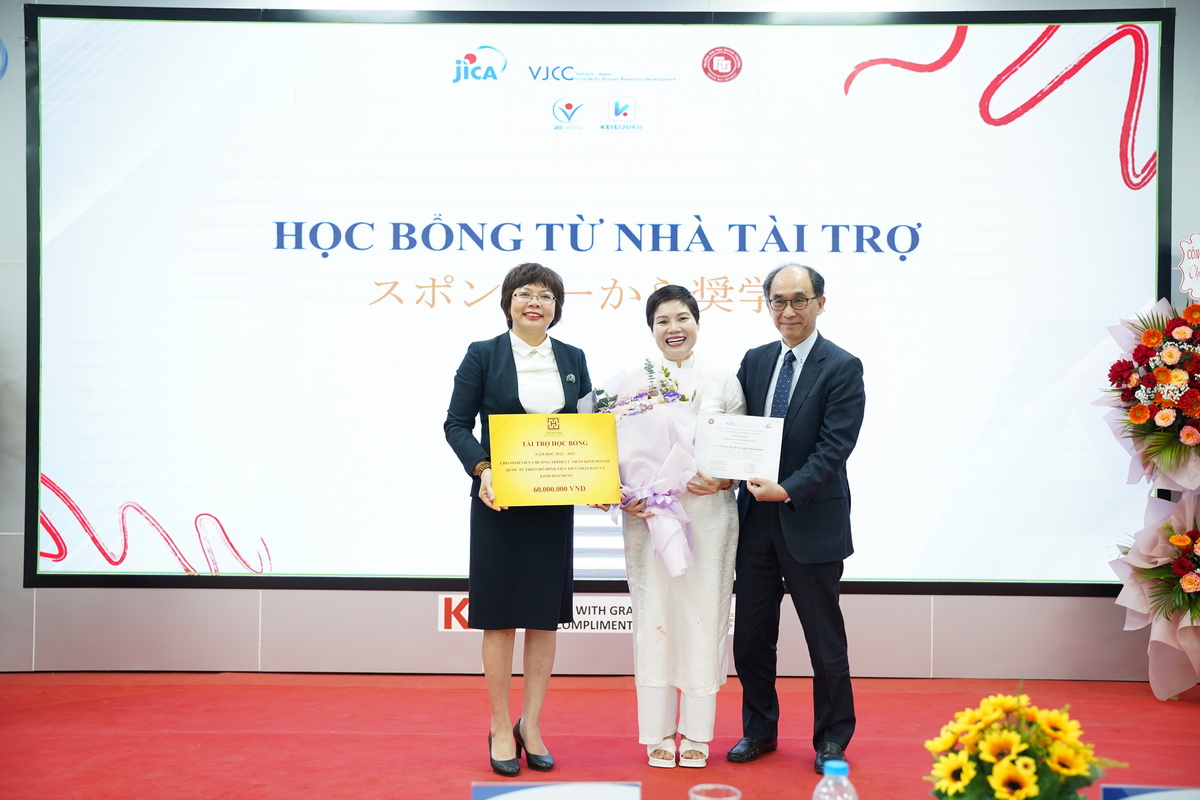 Cũng nhân dịp này, các doanh nghiệp trong cộng đồng Keieijuku đã trao những phần học bổng có giá trị cho các em sinh viên: Công ty đồ gỗ mỹ nghệ Hướng Mai trao học bổng trị giá 60 triệu đồng, Công ty CP Gama Lift trao học bổng trị giá 30 triệu đồng; Công ty TNHH Đầu tư sản xuất Thương mại và dịch vụ Bình Minh trao học bổng trị giá 40 triệu đồng và Tập đoàn Hanel trao học bổng 50 triệu đồng. Đồng thời, Cơ quan hợp tác quốc tế Nhật Bản cũng đã trao các khóa học ngắn hạn cho các sinh viên xuất sắc với tổng giá trị lên đến 50 triệu đồng.