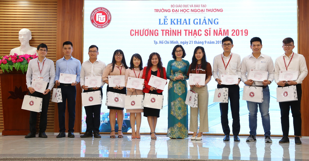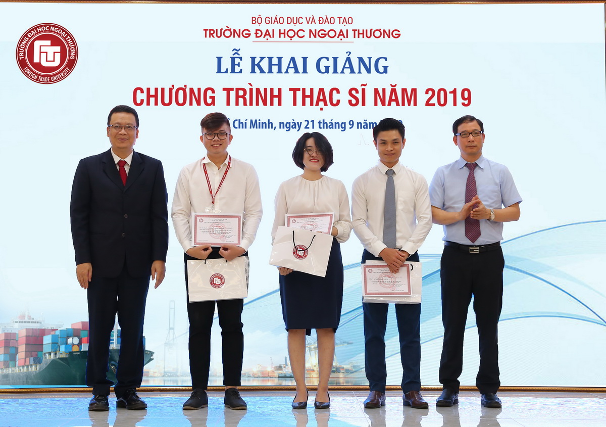 Nhằm ghi nhận và tuyên dương thành tích của các tân học viên cao học trúng tuyển đợt 1 năm 2019, Lãnh đạo Trường ĐH Ngoại thương cũng trao quyết định khen thưởng, giấy khen và phần thưởng cho 3 học viên đạt danh hiệu thủ khoa đầu vào: Nguyễn Văn Hưng thủ khoa Chương trình điều hành cao cấp EMBA; Trịnh Nguyễn Thảo Nguyên thủ khoa ngành Quản trị kinh doanh và Trần Năng Đại Phú thủ khoa ngành Tài chính - Ngân hàng.