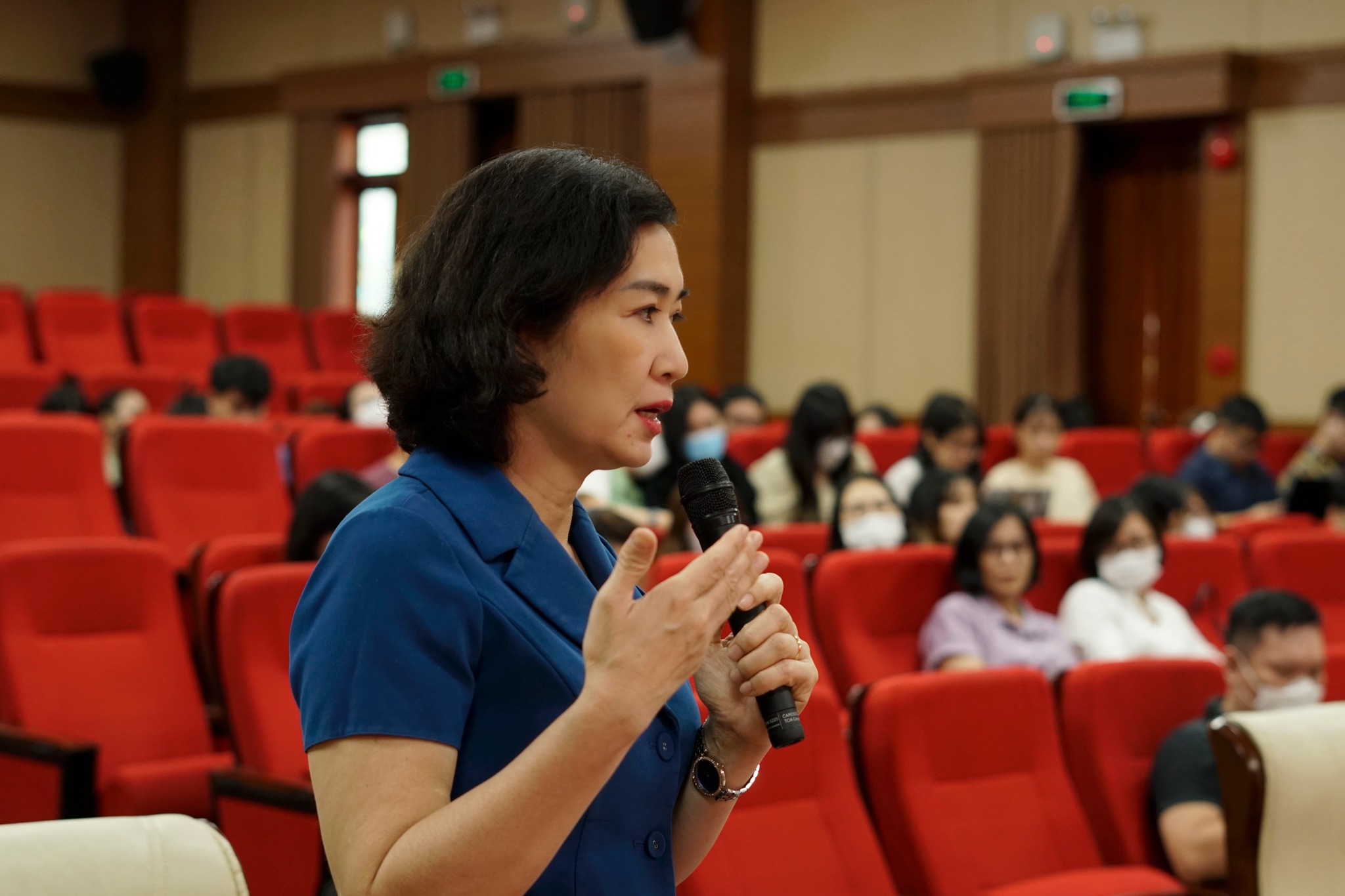 Phát biểu tại tọa đàm PGS, TS Lê Thị Thu Thủy đã nhấn mạnh tầm quan trọng và sự cần thiết của việc học tập sau đại học. Bên cạnh đó, cô cũng chia sẻ một số điểm quan trọng trong chiến lược phát triển của Nhà trường trong giai đoạn mới hướng tới các chương trình đào tạo sau đại học, hỗ trợ người học trong nghiên cứu và học tập.