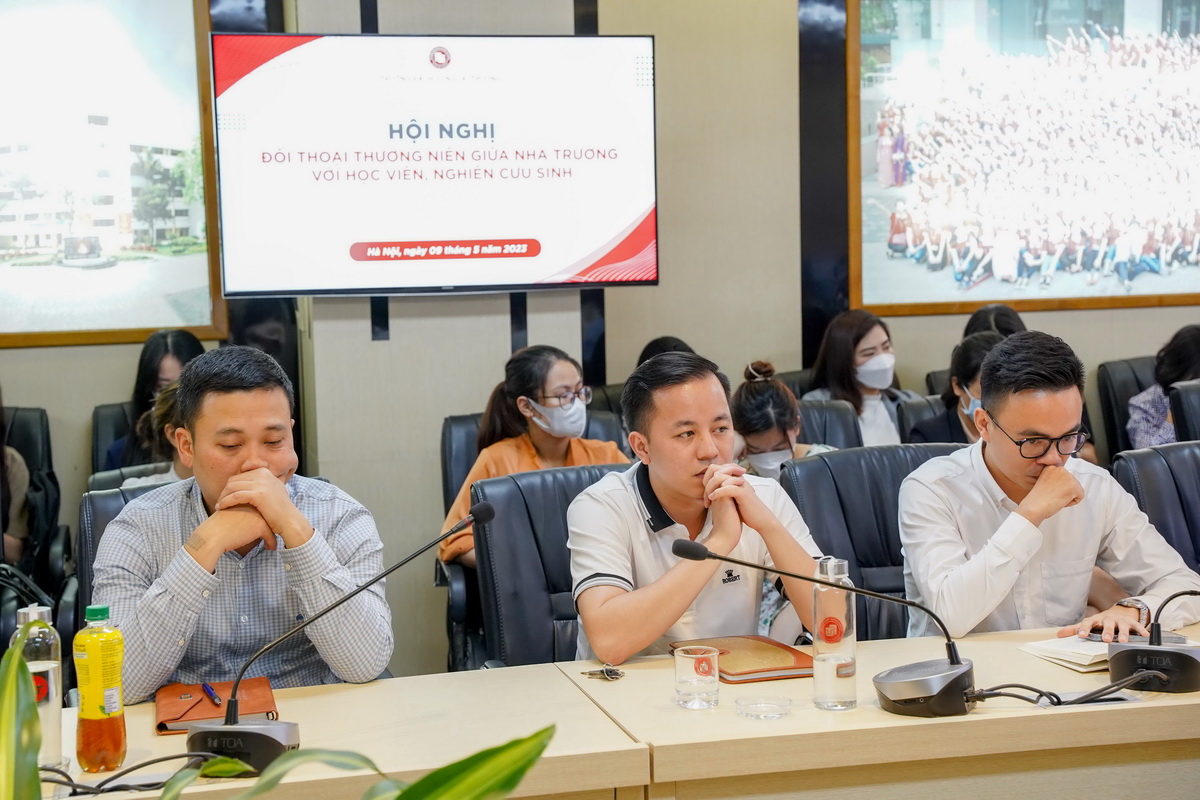 Đại diện học viên, nghiên cứu sinh đã nêu vấn đề, câu hỏi tới Nhà trường, Khoa Sau đại học, đơn vị chuyên môn cũng như các đơn vị chức năng xoay quanh những nội dung về các văn bản hướng dẫn, quy định, quy chế đào tạo của Nhà trường; điều kiện tốt nghiệp về ngoại ngữ, phần mềm quản lý, cơ sở vật chất các lớp học; hệ thống internet, thư viện, học phí, các nội dung liên quan đến đăng ký đề tài luận văn, đề án tốt nghiệp; tăng cường các hoạt động kết nối người học với Nhà trường, ngày truyền thống của người học, các buổi giao lưu với chuyên gia thông qua các hoạt động thực tế.