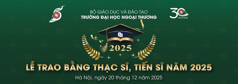 Nhà trường xin trân trọng kính mời các Tân thạc sĩ, các Tân tiến sĩ cùng gia đình và cơ quan công tác của mình tới tham dự Lễ trao bằng Thạc sĩ, Tiến sĩ năm 2025 được tổ chức vào Thứ Bảy, ngày 20/12/2025 tại Trường Đại học Ngoại thương.