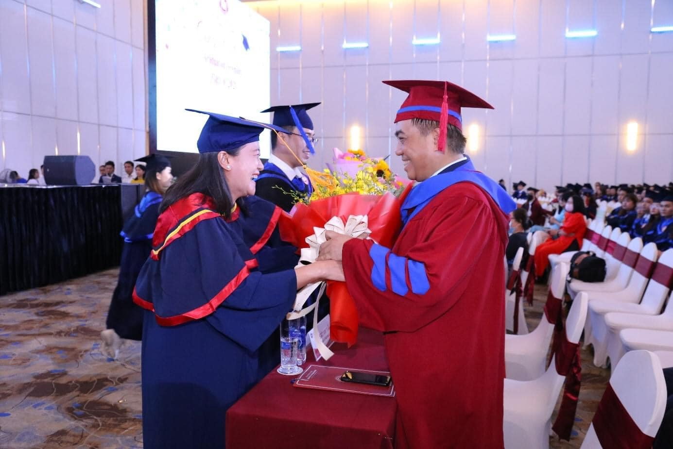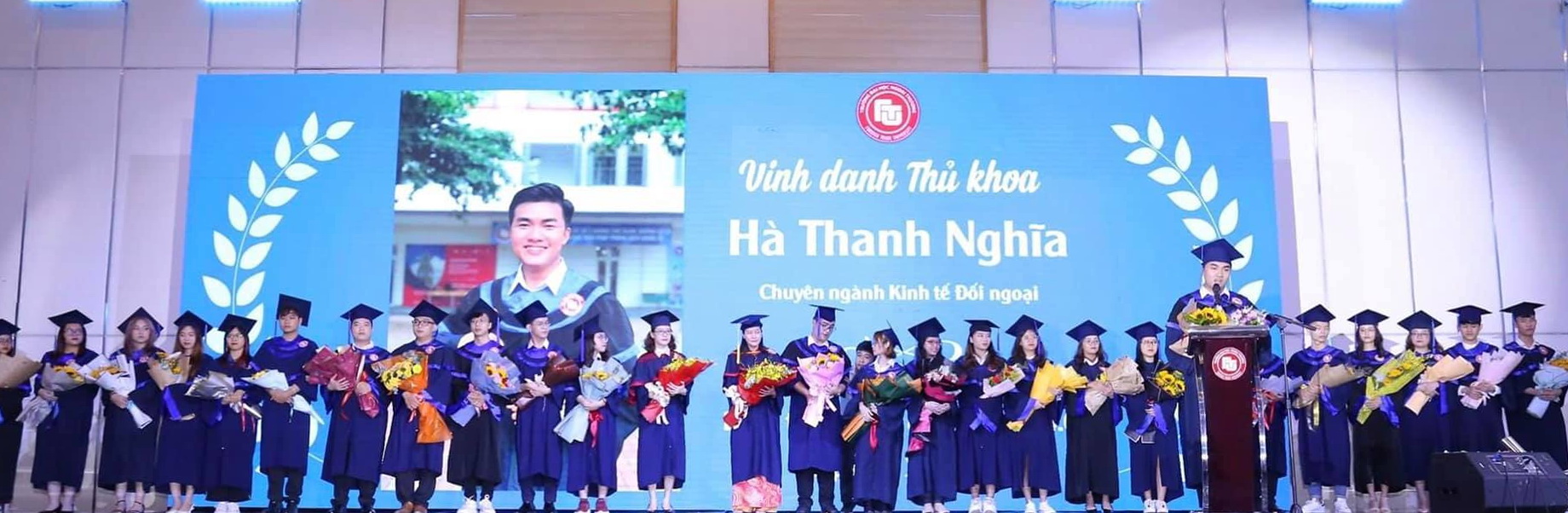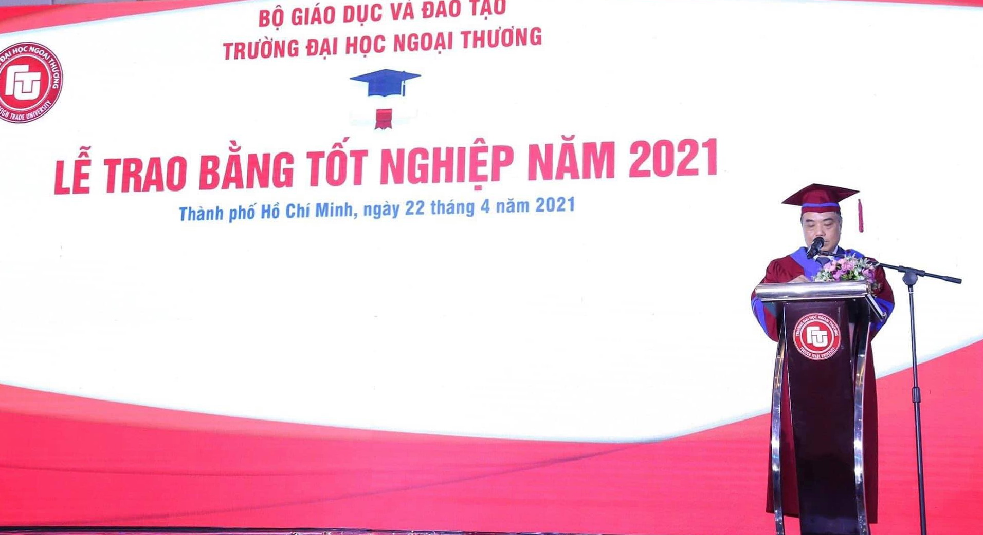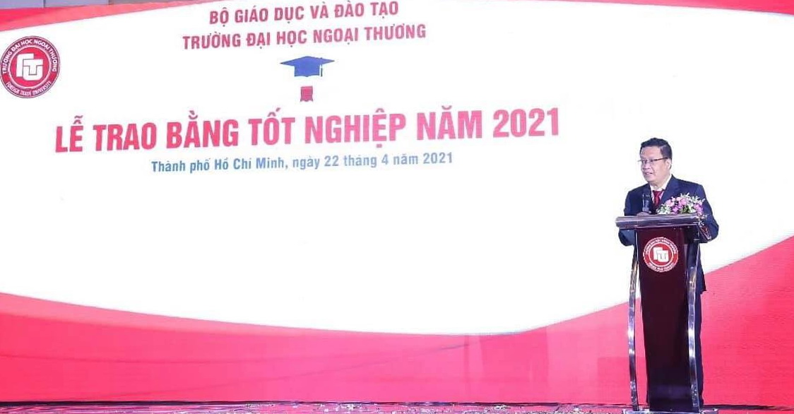 Thầy đặc biệt tuyên dương các tân Cử nhân đã phấn đấu học tập cũng như đạt nhiều thành tích xuất sắc trong các cuộc thi sinh viên, phong trào sinh viên nghiên cứu khoa học, hoạt động Đoàn – Hội và các công tác xã hội khác. Thầy hi vọng rằng những kỉ niệm đẹp tại mái nhà chung Ngoại thương sẽ là hành trang để các em tiếp tục bước đi trên con đường sự nghiệp của mình, đồng thời phát huy bản lĩnh và tinh thần Ngoại thương, trở thành những con người tài năng tạo ra nhiều giá trị tốt đẹp cho xã hội.