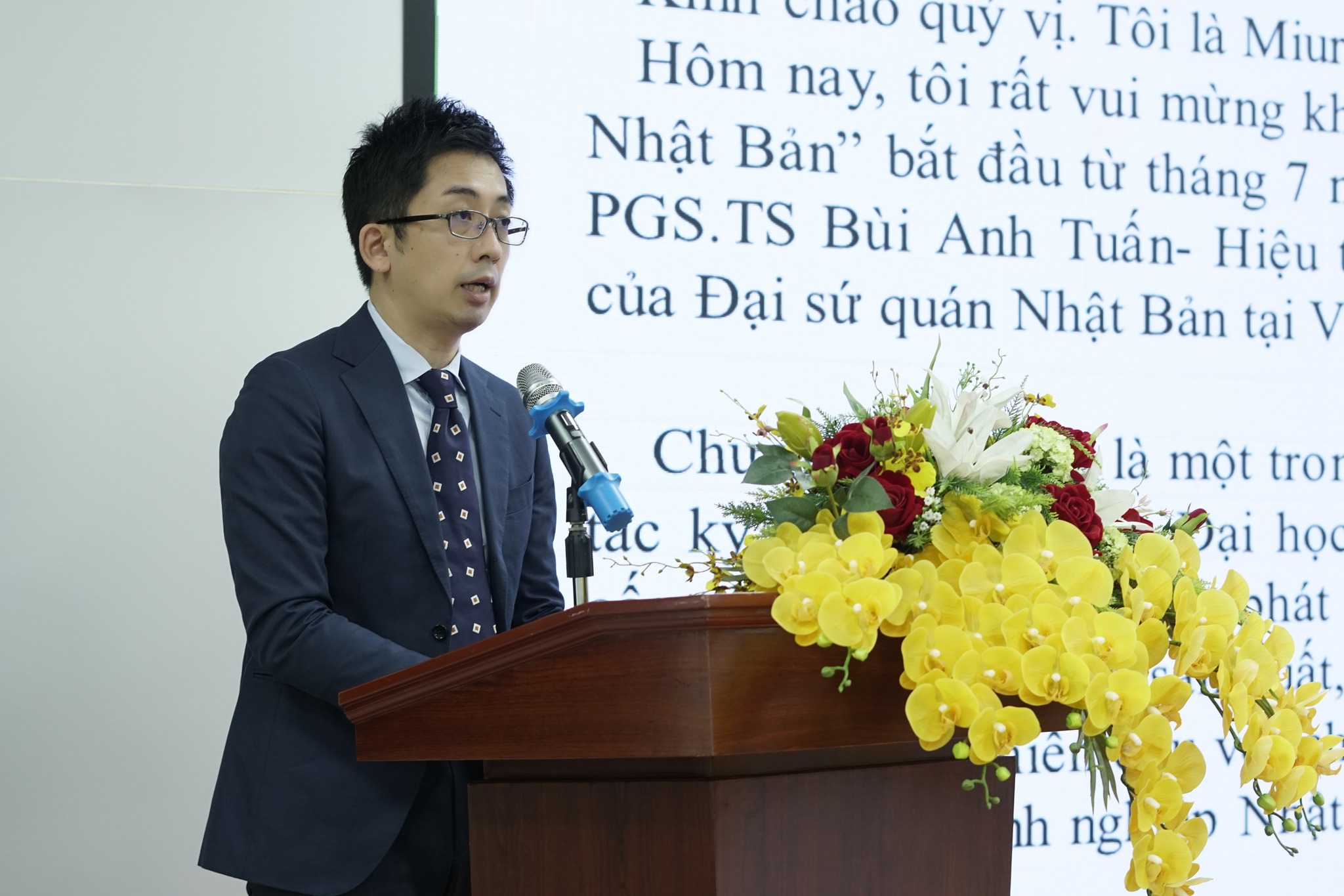 Đại diện cho Đại sứ quán Nhật Bản tại Việt Nam, ông Okabe Daisuke gửi lời chúc mừng tới Viện VJCC và Tập đoàn Mitani Sangyo vì đã nỗ lực triển khai và đảm bảo kết quả của khóa đào tạo. Ông hy vọng tất cả những học viên tham gia khóa đào tạo này sẽ nắm bắt những cơ hội để đưa doanh nghiệp của mình phát triển và đóng một vai trò tích cực trong sự chuyển mình của nền công nghiệp Việt Nam.