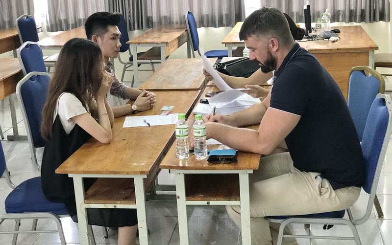 Sinh viên thể hiện khả năng giao tiếp tiếng Anh trong phần thi