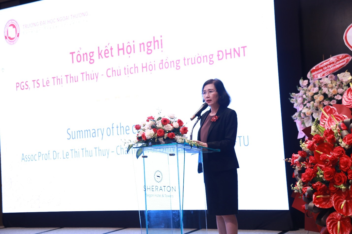 Đại diện cho Nhà trường, PGS, TS Lê Thị Thu Thủy đã tổng kết hội nghị bằng những chia sẻ về sứ mệnh, triết lý đào tạo cùng những giá trị cốt lói của Nhà trường. Cô khẳng định hội nghị đã đạt được những mục tiêu kỳ vọng của Nhà trường, đó là lắng nghe những ý kiến đóng góp từ các bên, thông qua đó hoàn thiện các chương trình đào tạo trong ngành Du lịch – Khách sạn. Cô cũng giao nhiệm vụ cho Khoa Đào tạo quốc tế, Ban Đào tạo quốc tế, Trung tâm ICCC - Cơ sở II TP. HCM tiếp thu ý kiến đóng góp của các chuyên gia, doanh nghiệp ngay say hội nghị này để có kế hoạch cải tiến nhằm nâng cao hơn nữa chất lượng đào tạo của 2 chương trình.