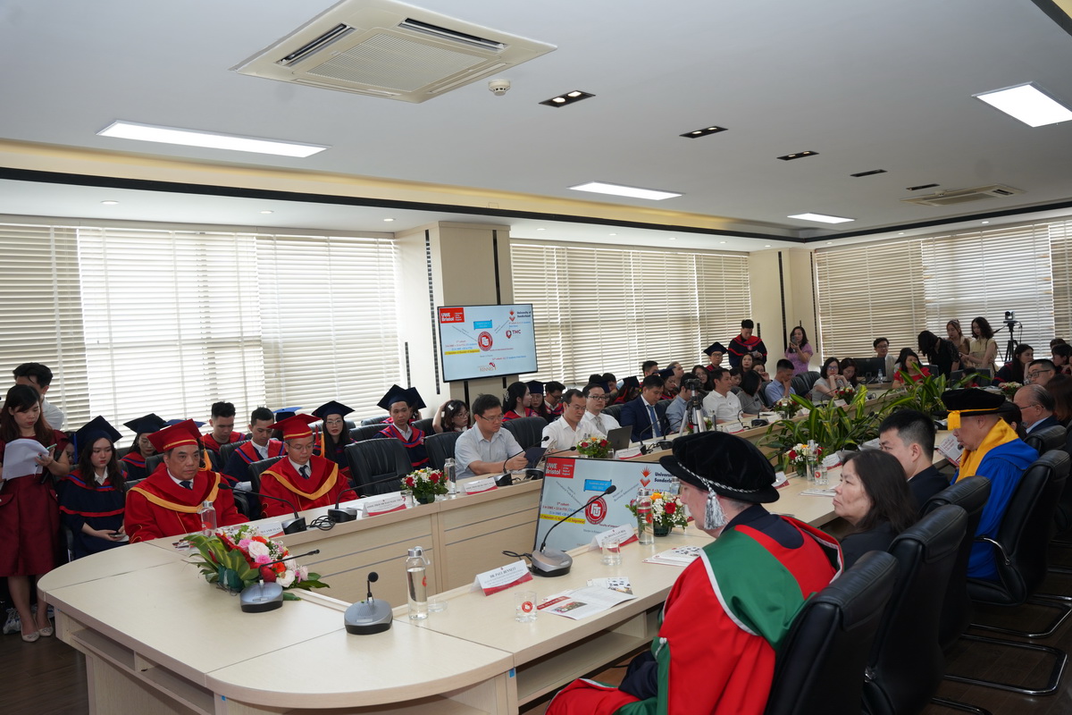 Mặc dù chịu ảnh hưởng bởi Đại dịch Covid 19, các học viên đều đã rất nỗ lực và đạt được kết quả ấn tượng. Buổi lễ cũng đã vinh danh các học viên đạt thành tích cao nhất của các chương trình: Học viên Trần Viết Quân – Chương trình Thạc sĩ Luật Kinh tế & Thương mại Quốc tế (Khóa 5) liên kết với ĐH Tây Anh Quốc (Anh Quốc); Học viên Nguyễn Châu Giang – Chương trình Thạc sĩ Tài chính (Khóa 11) liên kết với ĐH Rennes 1 (Pháp); Học viên Nguyễn Thùy Dương – Chương trình Thạc sĩ Quản trị Kinh doanh (Khóa 4) liên kết với ĐH Sunderland (Anh Quốc).