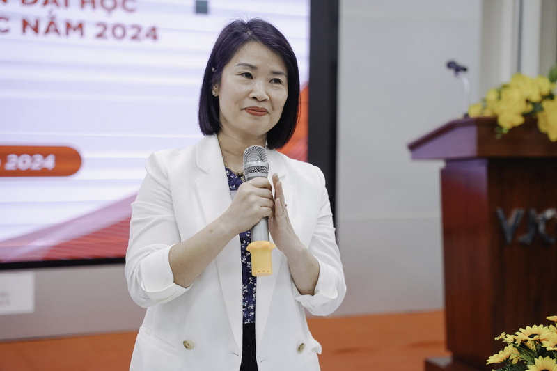 Phát biểu mở đầu chương trình, PGS, TS Vũ Thị Hiền đã chia sẻ về triết lý giáo dục, sứ mệnh và những giá trị cốt lõi của Trường ĐH Ngoại thương. Cô bày tỏ kỳ vọng các tân sinh viên sẽ luôn nỗ lực, phát triển bản thân để vững vàng tiến bước trong học tập và sự nghiệp.