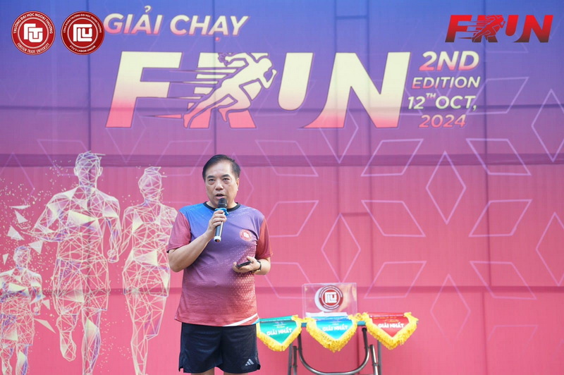 Phát biểu tại lễ khai mạc, PGS, TS Bùi Anh đã nhấn mạnh mục tiêu của giải chạy F.RUN với tính chất là hoạt động thể thao văn hoá nhằm phát triển phong trào tập luyện thể thao nói chung, tập luyện môn thể thao chạy bộ đường dài nói riêng, tăng cường sức khỏe cộng đồng, nâng cao sức khỏe thể chất, tinh thần cho viên chức, người lao động Nhà trường. Thầy cũng biểu dương các thành tích mà các “vận động viên” Ngoại thương đã đạt được trong Giải chạy bộ, đi bộ “FTU Virtual Race 2024” vừa qua và nêu cao tinh thần rèn luyện thể thao toàn trường thông qua các con số đã đăng ký tham gia Giải chạy F.RUN lần 2.