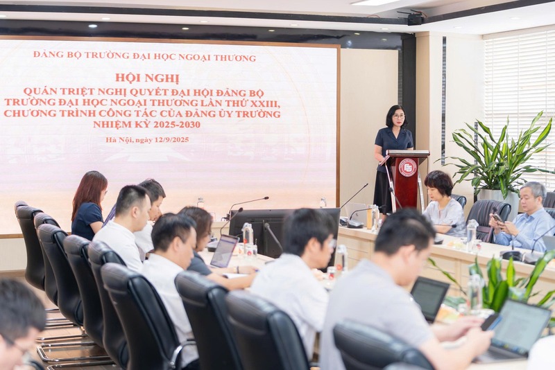 Hội nghị quán triệt, triển khai Nghị quyết Đại hội Đảng bộ Trường Đại học Ngoại Thương lần thứ XXIII, Chương trình công tác của Đảng ủy Nhà trường nhiệm kỳ 2025-2030 có ý nghĩa quan trọng nhằm thống nhất nhận thức, định hướng công tác cho cả nhiệm kỳ. Trong không khí của những ngày đầu năm học mới, hội nghị đã tạo khí thế và quyết tâm chính trị của Đảng bộ, thực hiện các chỉ tiêu, nhiệm vụ mà Nghị quyết Đại hội Đảng bộ Nhà trường đã đề ra.