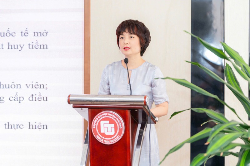 Thay mặt Đảng ủy, đồng chí Lê Thị Thu Thủy - Phó Bí thư Đảng ủy phụ trách Đảng bộ đã quán triệt những nội dung cơ bản của Nghị quyết Đại hội Đảng bộ Trường Đai học Ngoại Thương lần thứ XXIII, nhiệm kỳ 2025- 2030 trong đó đồng chí đã nhấn mạnh phương hướng, nhiệm vụ, chỉ tiêu và các giải pháp thực hiện trong nhiệm kỳ 2025-2030.