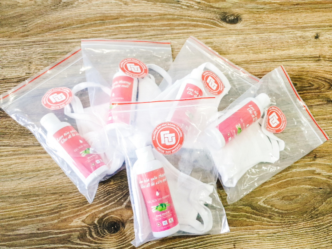 Dự kiến, trong những ngày đầu sau khi sinh viên quay trở lại học tập trung, mỗi FTUer sẽ được Nhà trường tặng 1 gói vật dụng y tế bao gồm 1 khẩu trang diệt khuẩn bằng vải và 1 chai dung dịch rửa tay sát khuẩn khô nhằm nâng cao ý thức bảo vệ và chăm sóc sức khỏe của các bạn sinh viên trong bối cảnh dịch bệnh Covid 19 vẫn đang có những diễn biến phức tạp và khó lường.