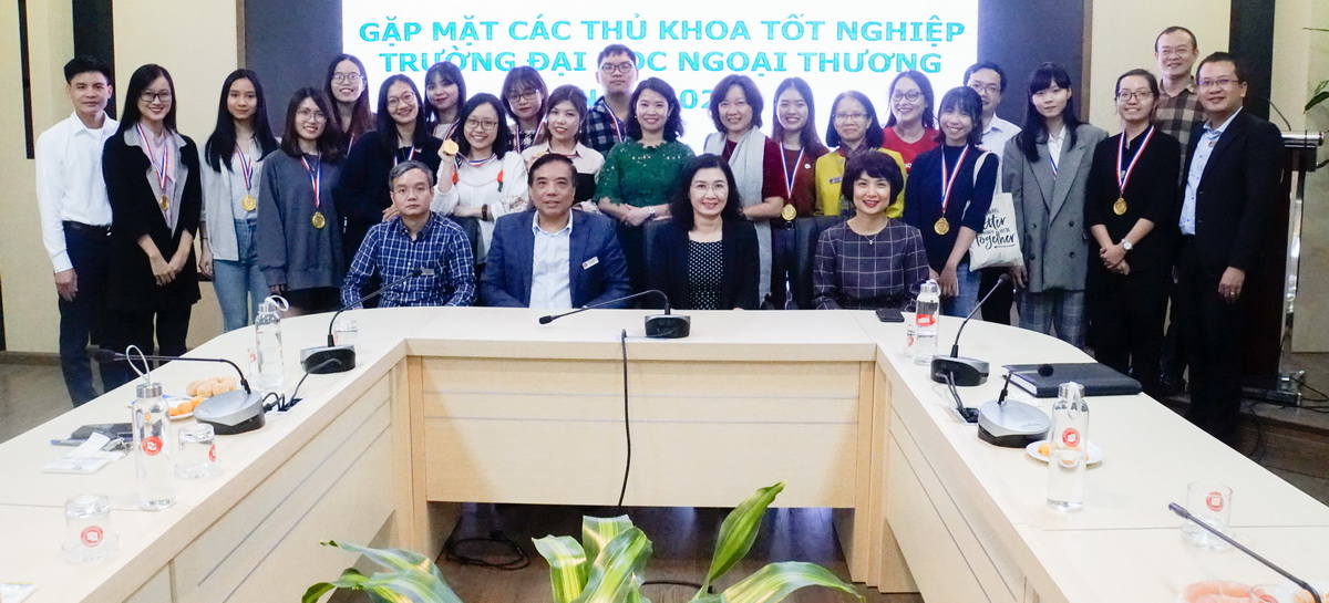 Tham dự buổi gặp mặt có PGS, TS Bùi Anh Tuấn - Hiệu trưởng Nhà trường, PGS, TS Lê Thị Thu Thủy - Chủ tịch HĐT, PGS, TS Phạm Thu Hương - Phó Hiệu trưởng, PGS, TS Đào Ngọc Tiến - Phó Hiệu trưởng, lãnh đạo một số đơn vị cùng các bạn tân thủ khoa tốt nghiệp năm 2020.