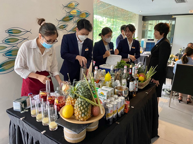 Ngày 09/06/2022, Khoa Quản trị kinh doanh, trường ĐH Ngoại thương đã phối hợp cùng Học viện quốc tế CHM (CitySmart Hotel Management) tổ chức buổi báo cáo đánh giá nghiệp vụ thực hành của sinh viên K59 chương trình CLC Quản trị khách sạn sau thời gian hơn 3 tháng học tập các nghiệp vụ thực hành bao gồm Quản trị dịch vụ khách sạn, Quản trị nghiệp vụ lễ tân, Quản trị nghiệp vụ buồng phòng, Quản trị nhà hàng & quầy bar.