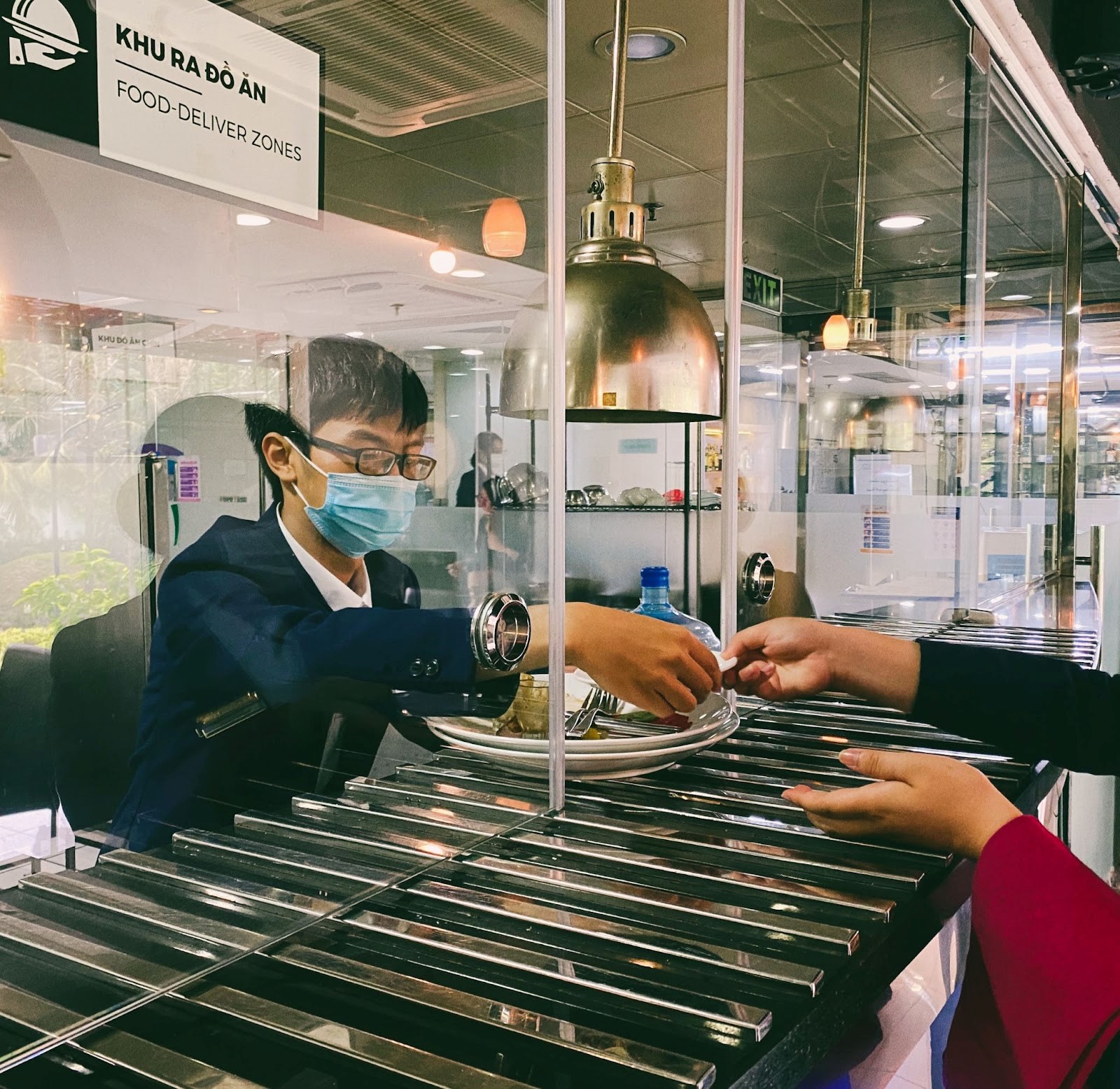 Buổi báo cáo mô phỏng không gian thực tế diễn ra trong khách sạn, tại đây các bạn sinh viên trong vai trò nhân viên tại một nhà hàng tiêu chuẩn quốc tế 5 sao đã đảm nhận vô cùng chuyên nghiệp các vị trí trong nhà hàng như Quản lý nhà hàng, Nhân viên điều phối, Nhân viên chạy món, Nhân viên pha chế… Các nghiệp vụ trong nhà hàng theo chuẩn quy trình phục vụ được áp dụng nhuần nhuyễn đã tạo nên một buổi tiệc chuẩn phong cách “fine dining” - chuẩn mực cao cấp nhất trong ngành dịch vụ nhà hàng.
