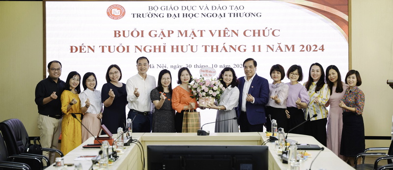 Ngày 30/10/2024, Trường ĐH Ngoại thương đã tổ chức buổi gặp mặt chia tay TS Phạm Thị Hồng Yến - Giảng viên Khoa Tiếng Anh Thương mại nghỉ hưu theo chế độ của Nhà nước.