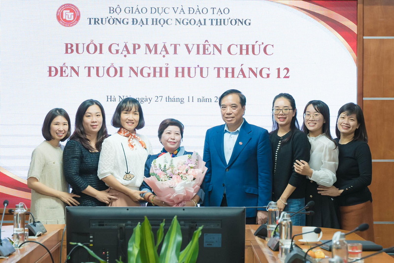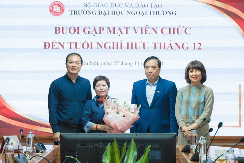 Ngày 27/11/2024, Trường ĐH Ngoại thương đã tổ chức buổi gặp mặt chia tay cô Phạm Ngọc Mai Linh - Cán sự Phòng Hành chính tổng hợp nghỉ hưu theo chế độ của Nhà nước.