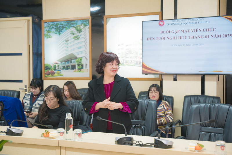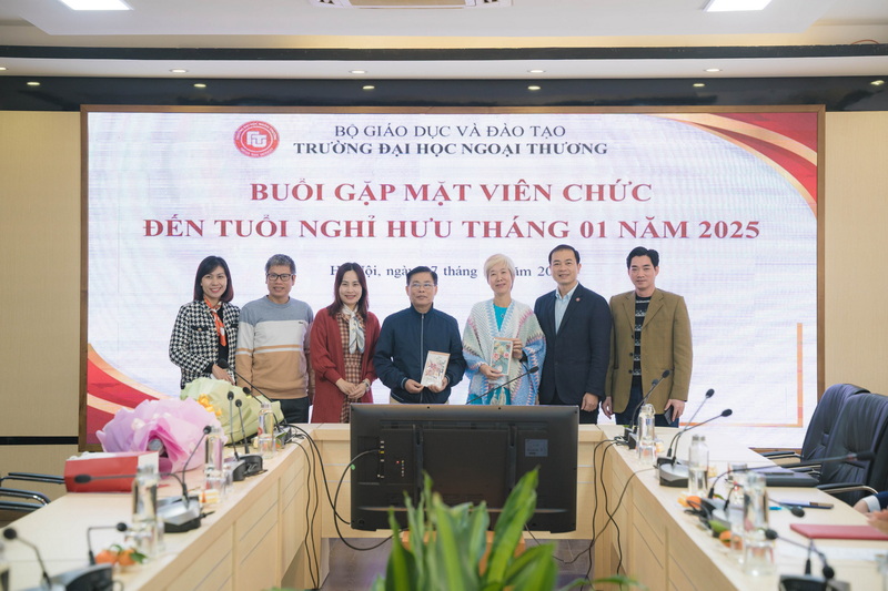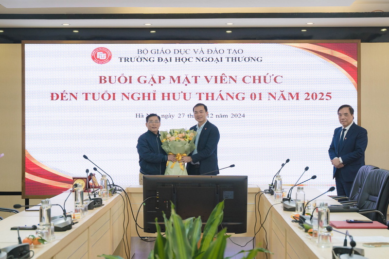Ngày 27/12/2024, Trường ĐH Ngoại thương đã tổ chức Buổi gặp mặt chia tay TS Nguyễn Thị Kim Anh - Giảng viên Viện Kinh tế và Kinh doanh Quốc tế và cán bộ Phan Văn Toản - Nhân viên Phòng Quản trị thiết bị nghỉ hưu theo chế độ của Nhà nước.