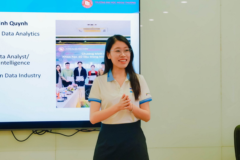 Đại diện các học viên Khóa 7, Lê Thị Thuỳ Trang đã chia sẻ những cảm nhận chân thành về hành trình học tập đáng nhớ tại chương trình: “Đối với những sinh viên học kinh tế như chúng em, việc viết ra một đoạn code, hay xử lý một bộ data quả là một việc không hề đơn giản. Em tin khoá học chính là nền tảng vững chắc, cung cấp cái nhìn toàn cảnh về ngành dữ liệu và hỗ trợ chúng em cách để tự mình tìm hiểu và nghiên cứu sâu hơn những mảng mình quan tâm.”