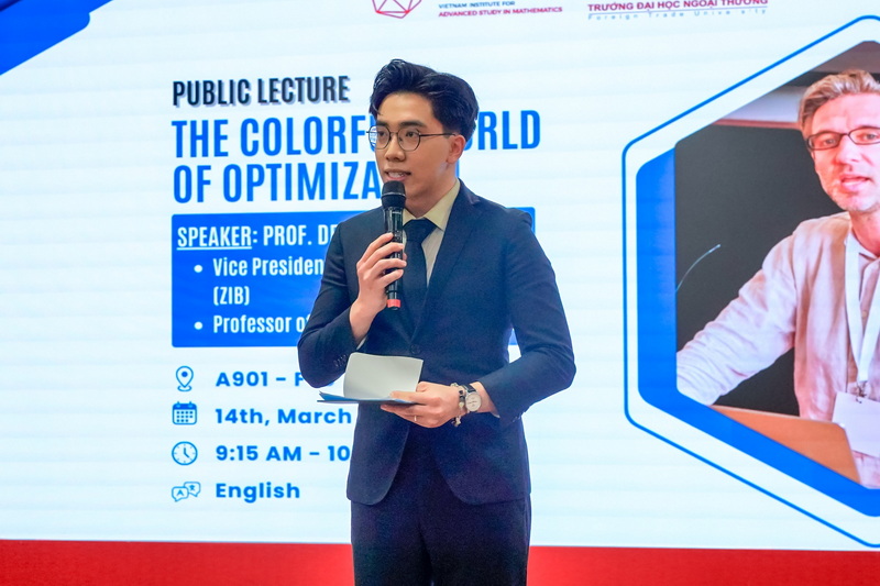 Ngày 14/3/2025, hướng tới kỷ niệm Ngày quốc tế Toán học (International Day of Mathematics - IDM), Trường ĐH Ngoại thương đã phối hợp cùng Viện Nghiên cứu Cao cấp về Toán (VIASM) tổ chức thành công Buổi chia sẻ với chủ đề “The Colorful World of Optimization”.