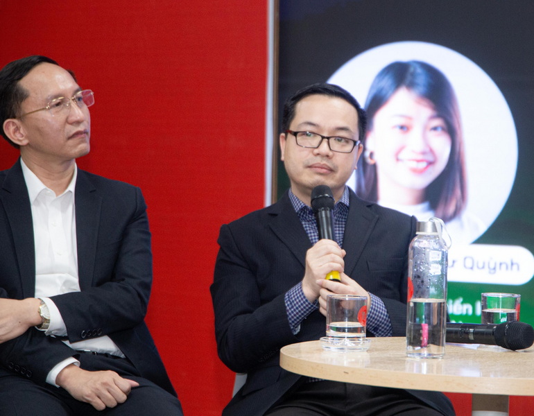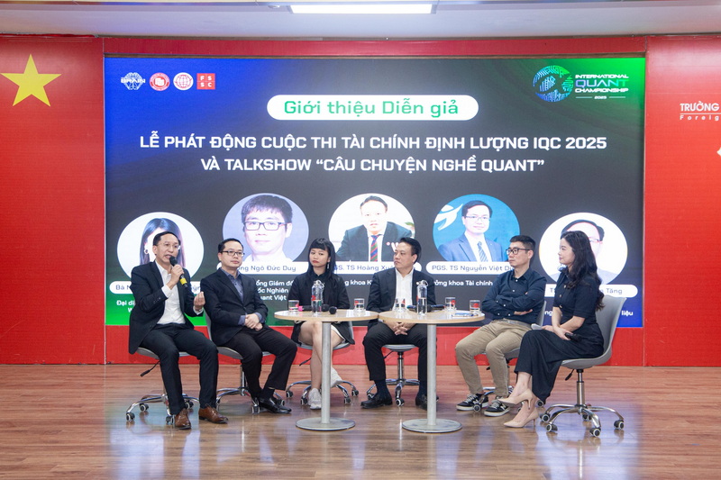 Tiếp sau nghi thức khởi động cuộc thi là Tọa đàm “Câu chuyện nghề Quant” với sự tham gia chia sẻ của Ông Ngô Đức Duy – Phó Tổng Giám đốc kiêm Giám đốc Nghiên cứu WorldQuant BRAIN; PGS, TS Hoàng Xuân Bình - Trưởng khoa Kinh tế Quốc tế; PGS, TS Nguyễn Việt Dũng - Trưởng khoa Tài chính Ngân hàng; TS Nguyễn Văn Tăng – Phó Trưởng Khoa Công nghệ và Khoa học dữ liệu và Bà Nguyễn Thị Như Quỳnh – Đại diện Bộ phận Chiến lược WorldQuant BRAIN.