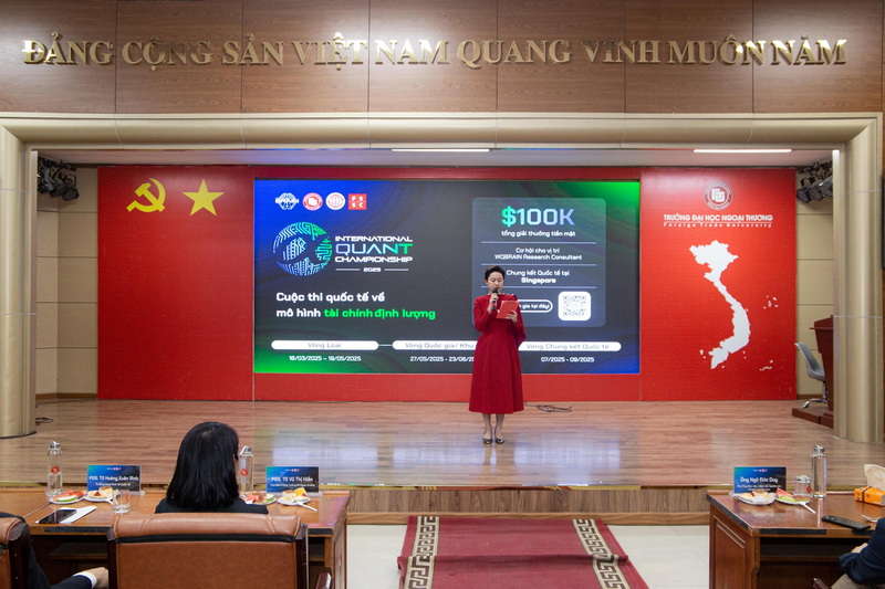 Ngày 20/3/2025, Trung tâm Hỗ trợ sinh viên, Trường ĐH Ngoại thương phối hợp với khoa Kinh tế Quốc tế và Công ty WorldQuant Việt Nam tổ chức thành công Lễ phát động Cuộc thi International Quant Championship 2025 (IQC) - Một trong những cuộc thi về ngành Tài chính định lượng lớn nhất Thế giới và Tọa đàm “Câu chuyện nghề Quant”.