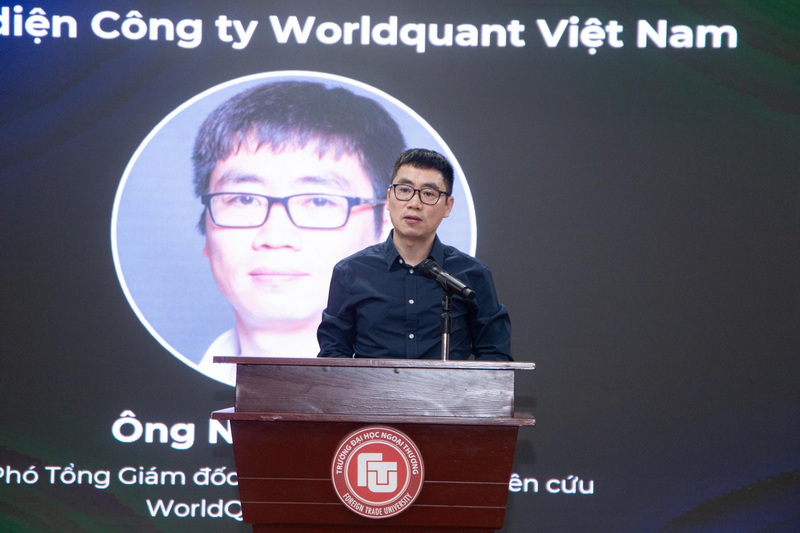 Về phía Trường ĐH Ngoại thương có sự hiện diện của PGS, TS Vũ Thị Hiền - Phó Hiệu trưởng Nhà trường; PGS, TS Hoàng Xuân Bình - Trưởng khoa Kinh tế Quốc tế; PGS, TS Nguyễn Việt Dũng - Trưởng khoa Tài chính Ngân hàng; TS Hoàng Tuấn Dũng - Giám đốc Trung tâm Hỗ trợ sinh viên; ThS Đinh Thủy Tiên - Phó Bí thư phụ trách Đoàn thanh niên Trường; TS Nguyễn Văn Tăng – Phó Trưởng Khoa Công nghệ và Khoa học dữ liệu; cùng các cán bộ, giảng viên và đông đảo các bạn sinh viên quan tâm tham gia tìm hiểu về lĩnh vực Tài chính định lượng.