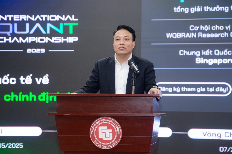 Phát biểu tại chương trình, PGS, TS Vũ Thị Hiền đã nhấn mạnh Trường ĐH Ngoại thương đã và đang mở rộng chương trình đào tạo đa ngành, đa lĩnh vực mới, có tính chất cập nhật, bắt kịp với nhu cầu của thị trường lao động cũng như xu thế phát triển tại Việt Nam và trên thế giới. Tiêu biểu trong số đó là các chương trình kinh tế, kinh doanh gắn với công nghệ số và khoa học dữ liệu đã được hình thành và bắt đầu tuyển sinh trong thời gian vừa qua. Các kiến thức về chuyển đổi số, khoa học dữ liệu,... dần trở thành những hiểu biết và kỹ năng cơ bản mà sinh viên cần trang bị. Chính vì vậy, có thêm trải nghiệm ở cuộc thi có quy mô toàn cầu, trong lĩnh vực mới Tài chính định lượng như IQC sẽ giúp các bạn sinh viên trau dồi và thực hành những kiến thức đã được học để áp dụng vào các mô hình kinh doanh thực tiễn. Nhân dịp này, PGS, TS Vũ Thị Hiền đã gửi lời cảm ơn tới Công ty WorldQuant vì đã đồng hành với Trường ĐH Ngoại thương trong rất nhiều hoạt động và hy vọng các đội thi của Nhà trường sẽ đạt kết quả cao trong cuộc thi IQC 2025.