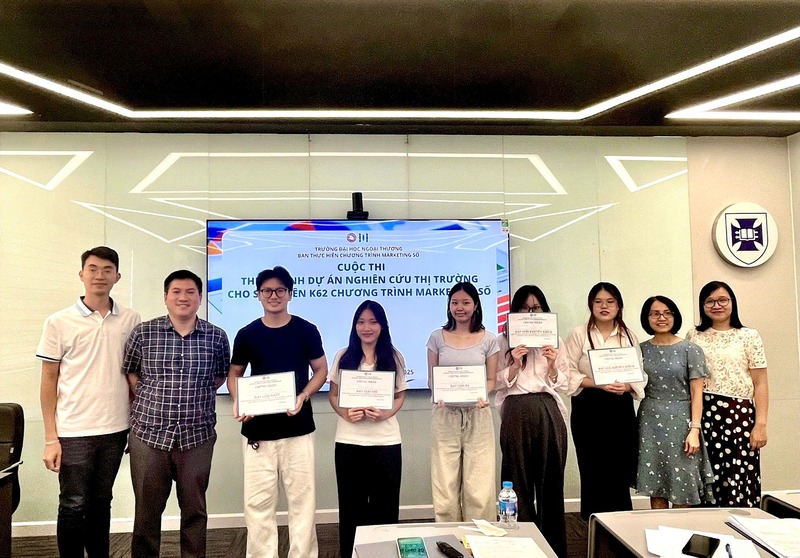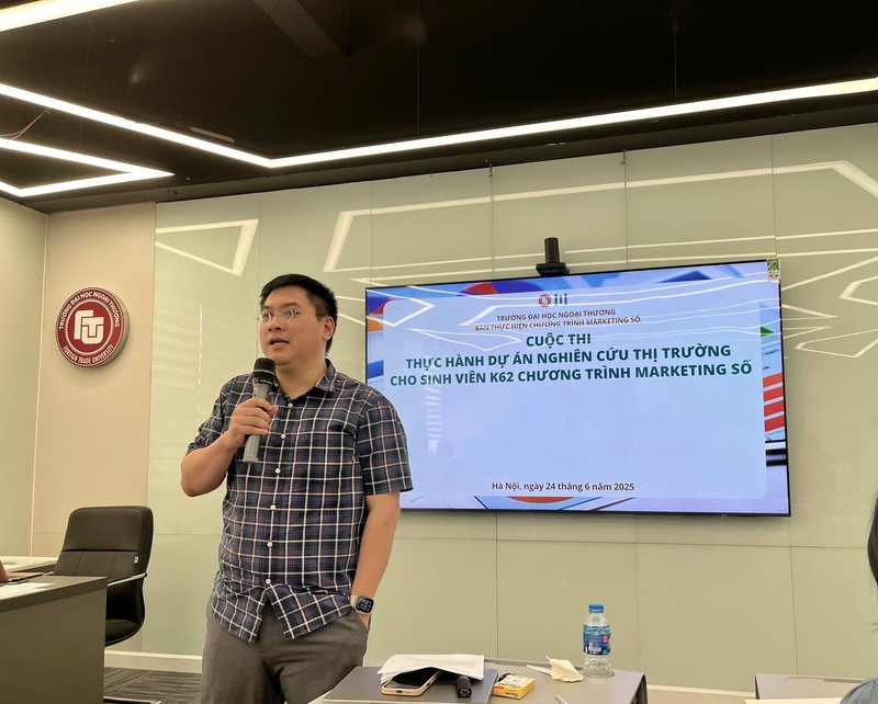 Ngày 24/6/2025, Ban thực hiện chương trình Marketing số đã phối hợp với Bộ môn Marketing và Truyền thông, Viện KT&KDQT tổ chức Cuộc thi “Lập dự án nghiên cứu thị trường” cho sinh viên chương trình Marketing số.