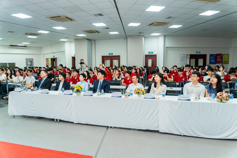 Buổi lễ còn có sự tham dự của 2 cựu sinh viên tốt nghiệp Khóa 57 Chương trình JIB, em Phạm Quang Huy và em Phạm Kim Ngân. Song song với bài chia sẻ đầy hữu ích xoay quanh những kỹ năng có để có được công việc mong muốn cũng như thể hiện tốt nhất năng lực của mình trong môi trường lao động cạnh tranh và đầy thay đổi, Huy và Ngân cũng không quên nhắn nhủ các em tân sinh viên và sinh viên các khóa luôn tích cực rèn luyện và trau dồi những kiến thức, kỹ năng bởi môi trường học tập tại Viện VJCC sẽ là nơi giúp các em có được những hành trang quý báu cho hành trình phát triển sự nghiệp trong tương lai.