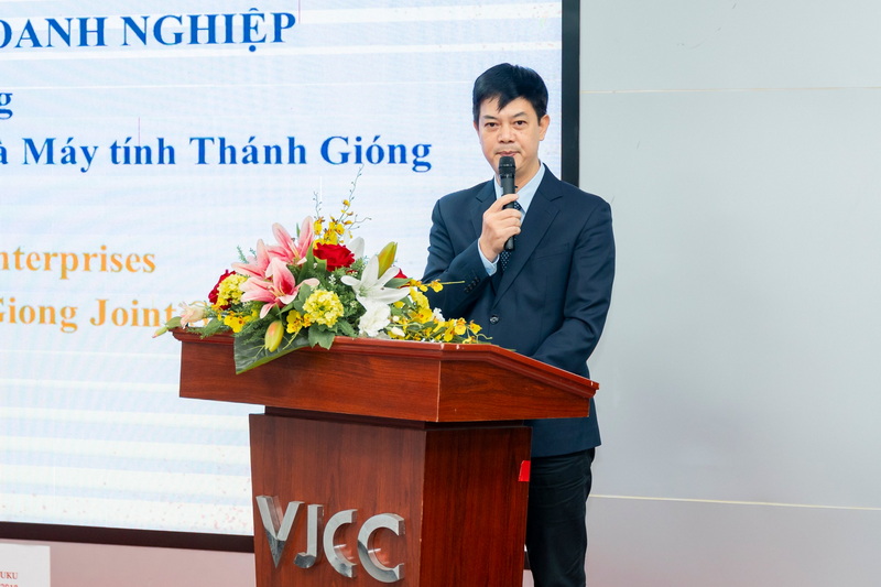 Tiếp nối, đại diện cho Cơ quan hợp tác quốc tế Nhật Bản JICA, ông Nishikawa Naotaka đã dành những chia sẻ thân tình về những mối lương duyên. Mối lương duyên giữa Việt Nam – Nhật Bản để từ đó hiện thực hóa bằng dự án giữa JICA và FTU chính là VJCC. Mối lương duyên giữa 2 ngôn ngữ tiếng Việt – tiếng Nhật và cuối cùng là những mối thân tình từ những người xa lạ trở thành bạn bè thân thiết. Qua đó, ông cam kết JICA sẽ luôn tiếp tục đồng hành, hỗ trợ các chương trình đào tạo cử nhân của Viện song song với các chương trình đào tạo doanh nghiệp trong vận hành dự án đồng thời bày tỏ mong muốn các em sinh viên sẽ luôn giữ vững tinh thần học tập chăm chỉ và không ngừng học hỏi giao lưu trong khoảng thời gian 4 năm tại mái nhà chung VJCC và Trường ĐH Ngoại Thương.