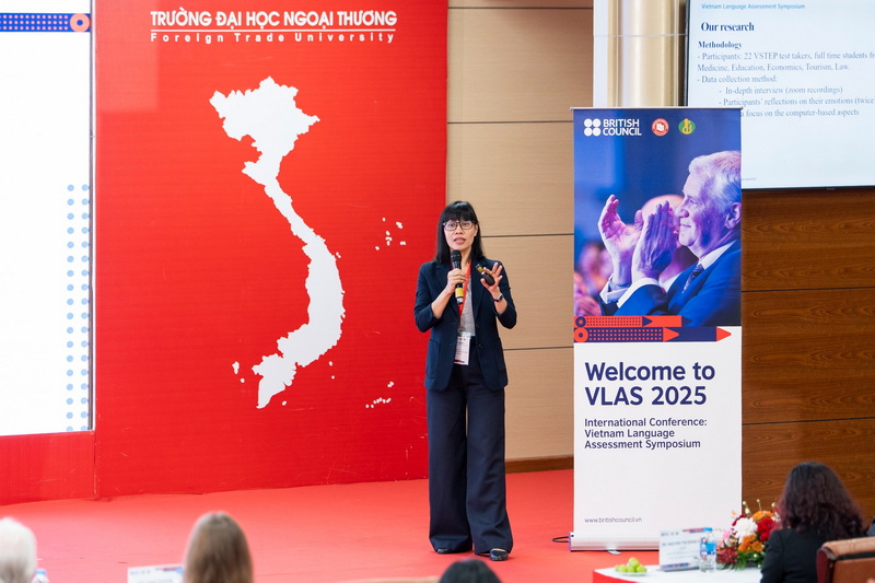 Đại diện Ban Quản lý Đề án Ngoại ngữ Quốc gia, TS. Nguyễn Thị Mai Hữu đã điểm lại những đổi mới trong công tác giảng dạy và đánh giá tiếng Anh tại Việt Nam và nhấn mạnh vai trò của công nghệ trong việc thúc đẩy đổi mới dạy và học ngoại ngữ. “Chủ đề của VLAS 2025 phản ánh xu hướng tất yếu của giáo dục hiện đại, khi khoa học dữ liệu và trí tuệ nhân tạo đang tạo nên những thay đổi sâu rộng trong phương pháp giảng dạy và đánh giá. Việc tích hợp công nghệ vào đánh giá không chỉ giúp nâng cao tính khách quan và hiệu quả mà còn mở ra cơ hội cá nhân hóa quá trình học tập, giúp người học phát triển năng lực một cách toàn diện.” TS. Nguyễn Thị Mai Hữu chia sẻ VLAS 2025 là diễn đàn giúp giáo viên tiếng Anh cấp THPT, giảng viên tiếng Anh đại học, các nhà nghiên cứu, các nhà quản lý chia sẻ lý luận và kinh nghiệm về kiểm tra đánh giá định kỳ, thường xuyên trong dạy và học ngoại ngữ. Đây cũng là cơ hội giúp giáo viên tiếng Anh, nhà nghiên cứu ngoại ngữ cập nhật kiến thức mới về kiểm tra đánh giá trong dạy và học ngoại ngữ Nối tiếp chủ đề về công nghệ và người học, Hội thảo VLAS 2025 đã mang đến một góc nhìn nhân văn và sâu sắc hơn về trải nghiệm cảm xúc của thí sinh khi tham gia các bài kiểm tra ngôn ngữ trực tuyến.