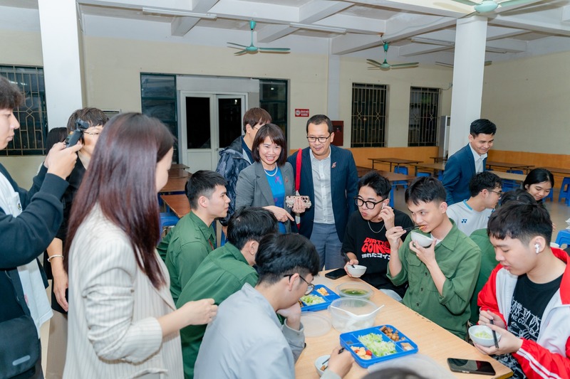 Tham gia Đoàn công tác có sự hiện diện của PGS, TS Vũ Thị Hiền – Phó Hiệu trưởng; ThS Đoàn Anh Tuấn – Bí thư Đoàn Thanh niên; ThS Phạm Thanh Hà – Phó Trưởng Phòng phụ trách Phòng Quản lý Đào tạo; ThS Nguyễn Huyền Minh – Trưởng phòng Truyền thông và Quan hệ đối ngoại; ThS Nguyễn Ngọc Tân – Phó Trưởng phòng Công tác Chính trị và Sinh viên; cùng lãnh đạo một số Khoa/Viện chuyên môn và đại diện các đơn vị trong Trường.
