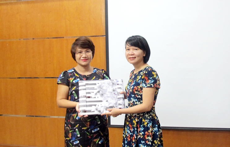 Bà Võ Thị Thúy Anh, Phó Hiệu trưởng trường ĐH Kinh tế Đà Nẵng trao quà lưu niệm cho bà Nguyễn Thu Thủy, Phó Hiệu trưởng trường ĐH Ngoại thương