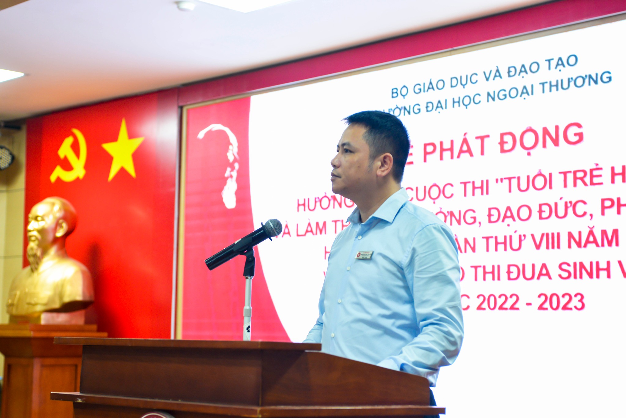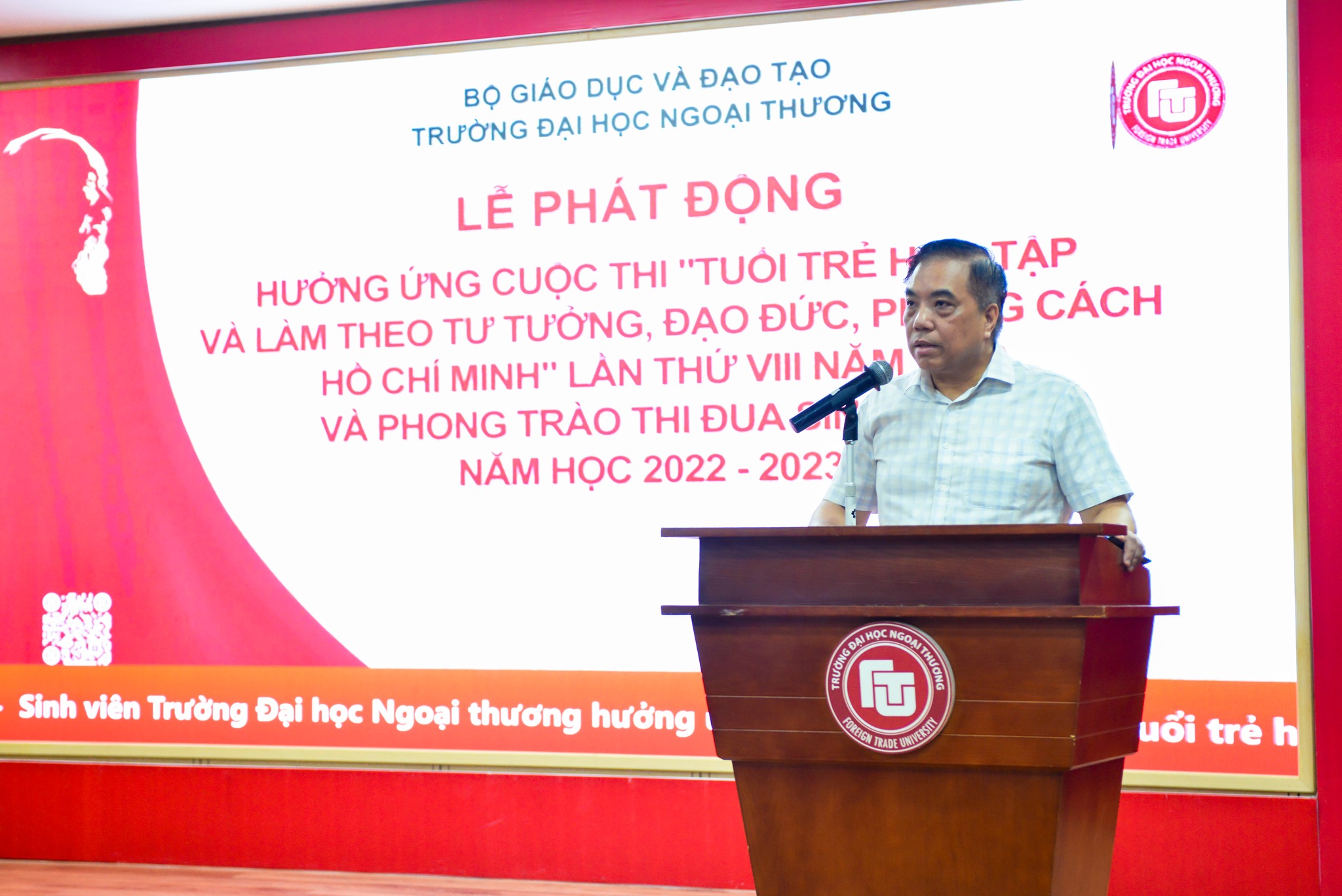 Nhằm tiếp tục đẩy mạnh học tập và làm theo tư tưởng, đạo đức, phong cách Hồ Chí Minh theo Chỉ thị số 05-CT/TW của Bộ Chính trị, ngày 12/09/2022, trường ĐH Ngoại thương đã tổ chức Lễ phát động hưởng ứng Cuộc thi trực tuyến “Tuổi trẻ học tập và làm theo tư tưởng, đạo đức, phong cách Hồ Chí Minh” năm 2022 và phong trào thi đua sinh viên năm học 2022 - 2023 do Bộ Giáo dục và Đào tạo tổ chức.