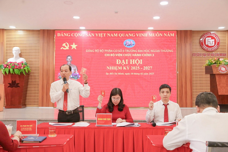Thực hiện Kế hoạch số 24-KH/ĐU ngày 14/11/2024 của Đảng uỷ Trường ĐH Ngoại thương về tổ chức Đại hội các chi bộ, Đảng bộ bộ phận trực thuộc, từ ngày 11/02 - ngày 27/02/2025, 40 chi bộ, 01 Đảng bộ bộ phận tại trụ sở chính Hà Nội, Cơ sở II Thành phố Hồ Chí Minh và Cơ sở Quảng Ninh đã tổ chức Đại hội chi bộ nhiệm kỳ 2025 - 2027, Đại hội Đảng bộ bộ phận nhiệm kỳ 2025-2030.