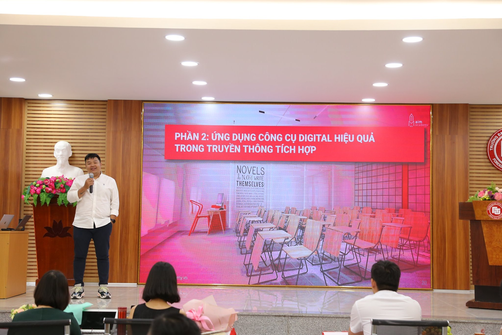 Báo cáo viên của khóa bồi dưỡng có bà Phạm Thị Diệu Anh - Giám đốc Công ty cổ phần Đào tạo AIM Academy, bà Phạm Nhị Hà - Marketing Manager - CJ Foods, ông Phạm Quốc Tuấn - Chief Digital Officer - Per-fectiv Vietnam.