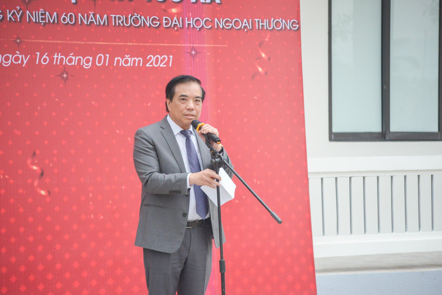 Phát biểu tại buổi lễ, PGS, TS Bùi Anh Tuấn bày tỏ vui mừng khi được chứng kiến công trình cải tạo ký túc xá dành cho sinh viên tại CSQN hiện đại, khang trang, được trang bị đầy đủ các trang thiết bị thiết yếu phục vụ cho việc học tập và sinh hoạt của sinh viên tại Cơ sở. Thầy cũng cho biết trong thời gian qua và cả trong thời gian tới, Nhà trường đã, đang và sẽ có nhiều giải pháp đồng bộ, quyết liệt nhằm đẩy mạnh việc xây dựng, cải tạo, trang bị cơ sở hạ tầng cũng như cơ sở vật chất tại cả 3 cơ sở đào tạo nhằm nâng cao hơn nữa điều kiện giảng dạy, rèn luyện và học tập cho cả cán bộ, giảng viên và sinh viên. Thầy kỳ vọng, với với quyết tâm chính trị cao, trong thời gian tới, bộ mặt cơ sở vật chất của Nhà trường sẽ có sự thay đổi rõ rệt, xứng tầm với thương hiệu và uy tín của Nhà trường.