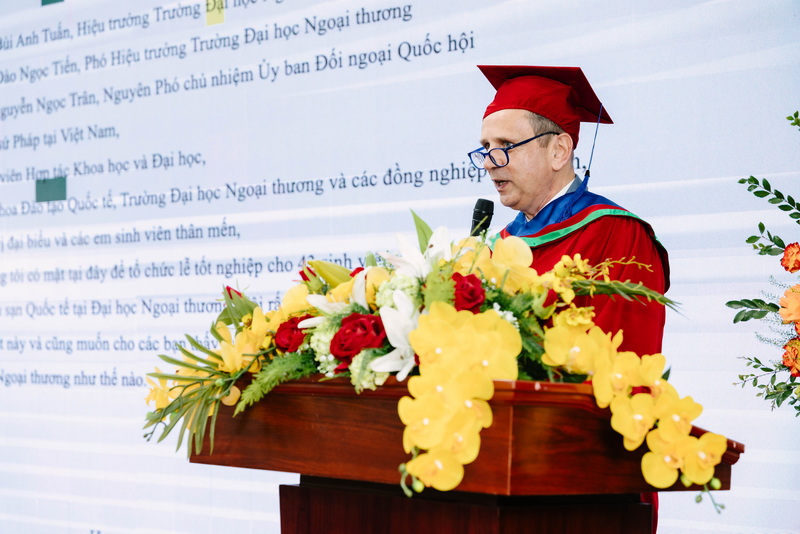 Ông Paul Dazemar - Giám đốc Mạng lưới Quốc tế, Trường Kinh doanh Du lịch và Khách sạn Vatel chúc mừng các sinh viên F-VATEL-2 chính thức gia nhập đại gia đình của hơn 45.000 sinh viên tốt nghiệp từ các trường Vatel trên thế giới - cộng đồng với một tinh thần đồng đội cao đẹp được tạo nên từ sự đoàn kết và giúp đỡ.