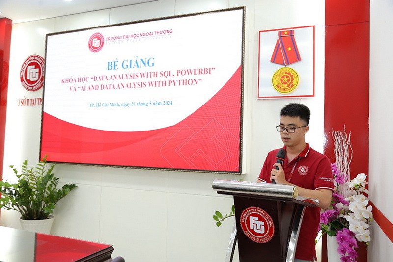Đại diện khoá học, học viên Nguyễn Minh Trí đã bày tỏ lòng biết ơn đến ban tổ chức, giảng viên giảng dạy đã truyền đạt những kiến thức, kỹ năng quý báu nói chung và giúp học viên có cơ hội được tiếp cận với những kiến thức nền tảng, chuyên sâu về phân tích dữ liệu, bao gồm SQL, Power BI và Python; học viên cũng đã có thể tự tin sử dụng các công cụ này để truy vấn, tổng hợp, phân tích và trực quan hóa dữ liệu một cách hiệu quả.