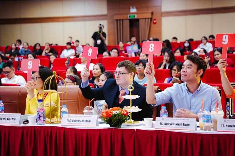 Ban Giám khảo tại Chung kết gồm: TS Nguyễn Thị Dung Huệ - Trưởng Khoa Tiếng Anh Thương mại, Trường ĐH Ngoại thương; PGS, TS Phạm Thị Thanh Thùy - Trưởng Khoa Ngoại ngữ Kinh tế, Trường ĐH Kinh tế Quốc dân; PGS, TS Hồ Ngọc Trung - Trưởng Khoa tiếng Anh, Trường ĐH Mở Hà Nội; TS Cấn Thúy Liên - Trưởng Khoa Ngoại ngữ, Học viện Ngân hàng; TS Nguyễn Thị Việt Nga - Trưởng Khoa Ngoại ngữ, Học viện Báo chí và Tuyên truyền; TS Nguyễn Thị Lan Phương - Trưởng Khoa tiếng Anh, Trường ĐH Thương mại; TS Lưu Thị Kim Nhung - Giám đốc Trung tâm Phát triển Giáo dục và Công nghệ số, Trường ĐH Sư phạm Hà Nội; TS Nguyễn Nhật Tuấn - Trưởng Khoa Đào tạo Sau Đại học, ĐH Hà Nội; TS Đỗ Thị Thu Nga - Phó Chủ nhiệm Khoa Ngôn ngữ Anh, ĐH Kinh doanh và Công nghệ Hà Nội; ThS Calum Leatham - Giảng viên Khoa Tiếng Anh, Học viện Ngoại giao.