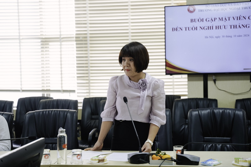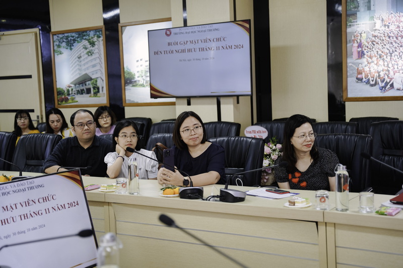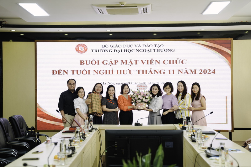Ngày 30/10/2024, Trường ĐH Ngoại thương đã tổ chức buổi gặp mặt chia tay TS Phạm Thị Hồng Yến - Giảng viên Khoa Tiếng Anh Thương mại nghỉ hưu theo chế độ của Nhà nước.