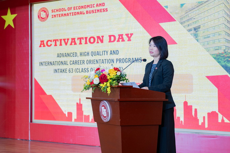 Phát biểu tại chương trình, PGS, TS Vũ Thị Hiền đã gửi lời chào, lời chúc mừng đến các bạn tân sinh viên thuộc sáu chương trình đào tạo bao gồm Chương trình TT Kinh tế đối ngoại; Chương trình CLC Kinh tế đối ngoại; Chương trình CLC Kinh doanh quốc tế; Chương trình TT I-Honour; Chương trình ĐHNNQT Logistic và quản lý chuỗi cung ứng và Chương trình ĐHNNQT Marketing số. PGS, TS Vũ Thị Hiền nhấn mạnh đây là các chương trình được xây dựng dựa trên các chương trình giảng dạy của các trường đại học top đầu trên thế giới, góp phần đào tạo nên nguồn nhân lực có chất lượng cao, toàn diện về cả kỹ năng chuyên môn và thái độ.
