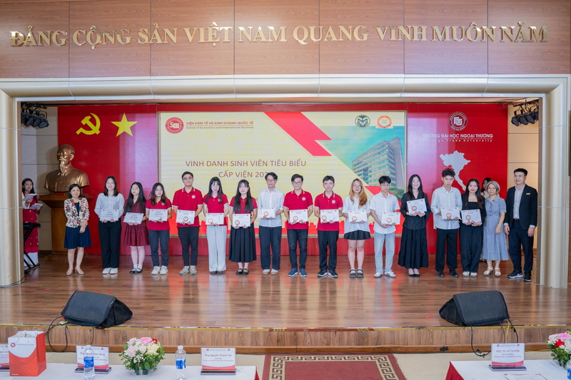 Cũng trong khuôn khổ chương trình, Viện KT&KDQT đã vinh danh các sinh viên tiêu biểu và sinh viên đạt giải tại Cuộc thi Sinh viên Nghiên cứu Khoa học năm học 2021 - 2022.